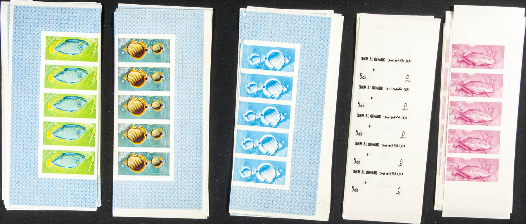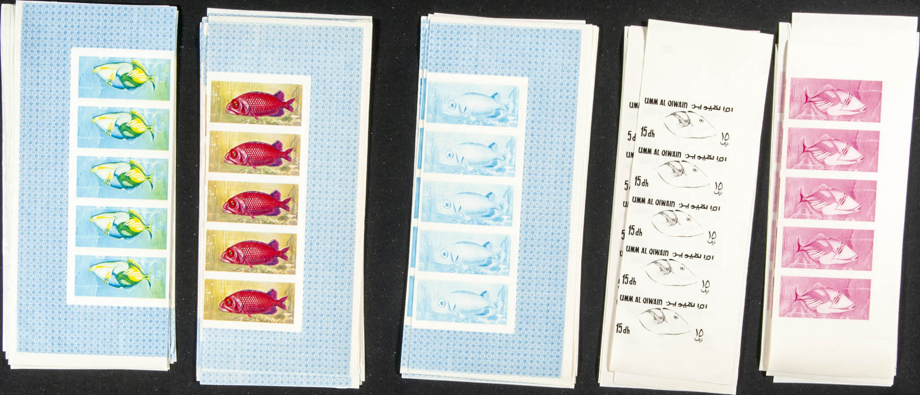 ★★ . 1967. Fish. Group of progressive plate proofs of the set. (Michel: 171/97)