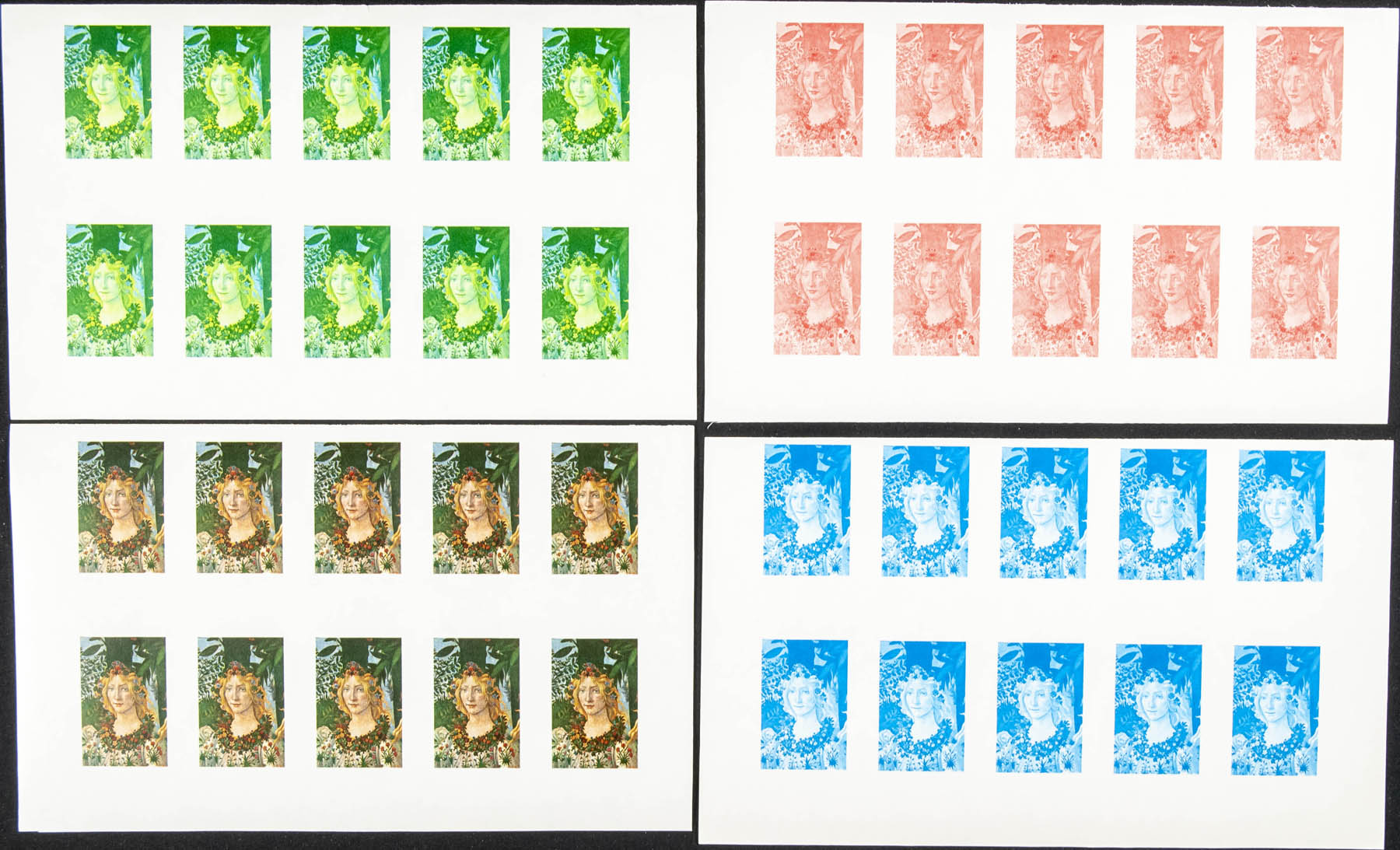★★Yvert . 1967. Florentin paintings. Group of progressive plate proofs of the set. (Michel: 592/96)