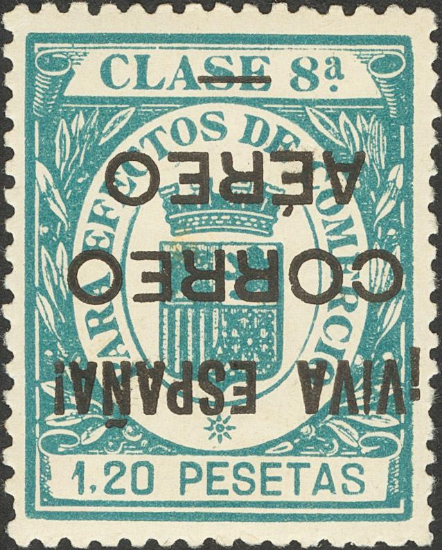 ★ 63hi. 1936. 1´20 pts verde. Variedad SOBRECARGA INVERTIDA. MAGNIFICO. Edifil 2017: 120 Euros