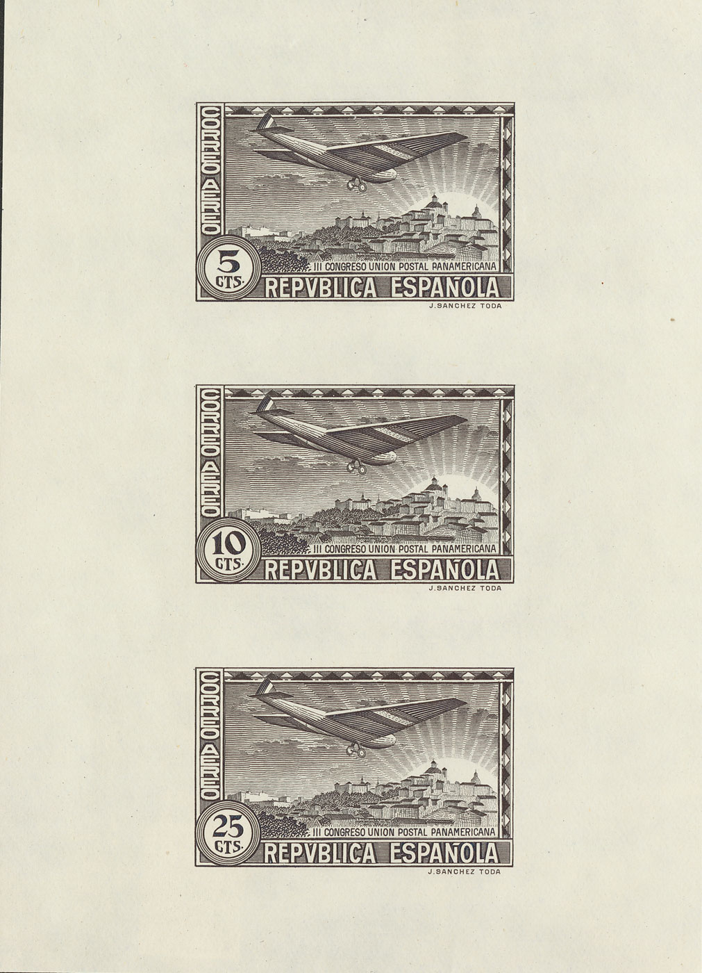 (★) 614/16P. 1931. 5 cts negro, 10 cts negro y 25 cts negro. PRUEBA DE PUNZON COLECTIVA. MAGNIFICA Y EXTRAORDINARIAMENTE RARA.