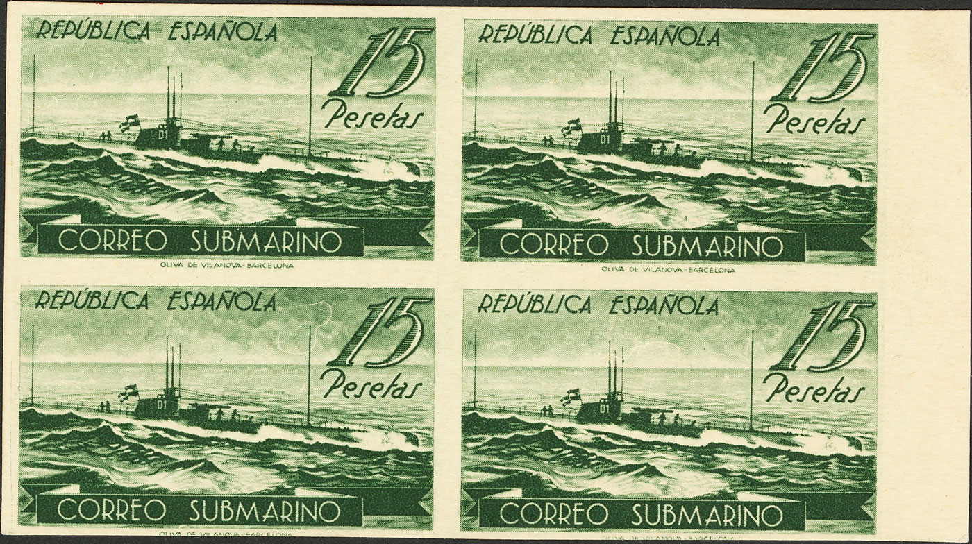 (★) 775/80pcs(4). 1938. Serie completa, bloque de cuatro. PAPEL CARTON y SIN DENTAR. MAGNIFICA Y RARA. Edifil 2020: 1.780 Euros