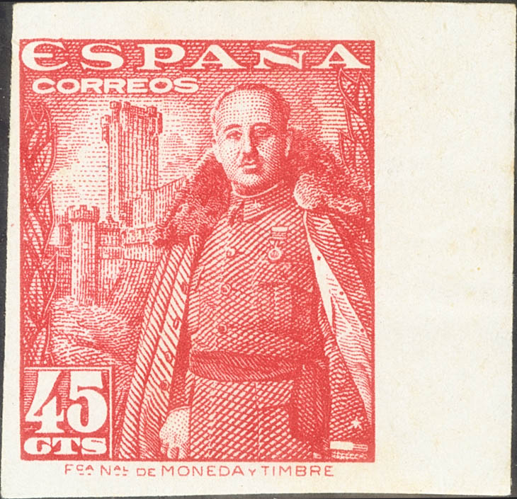 ★ 1028s. 1948. 45 cts rojo, borde de hoja (conservación habitual). SIN DENTAR. BONITO Y MUY RARO.