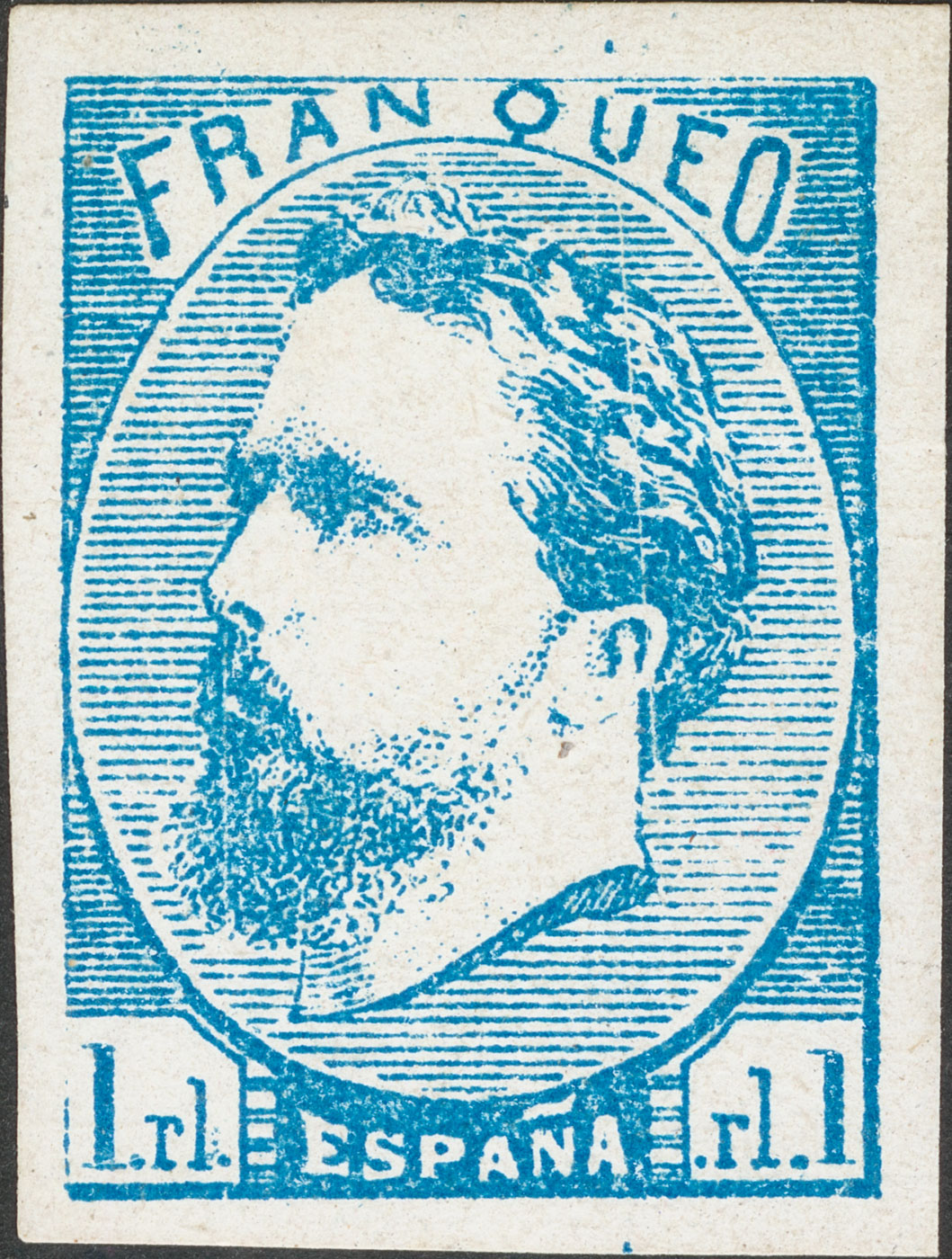 ★ 156. 1876. 1 real azul. Enormes márgenes. PIEZA DE LUJO. Cert. CEM.