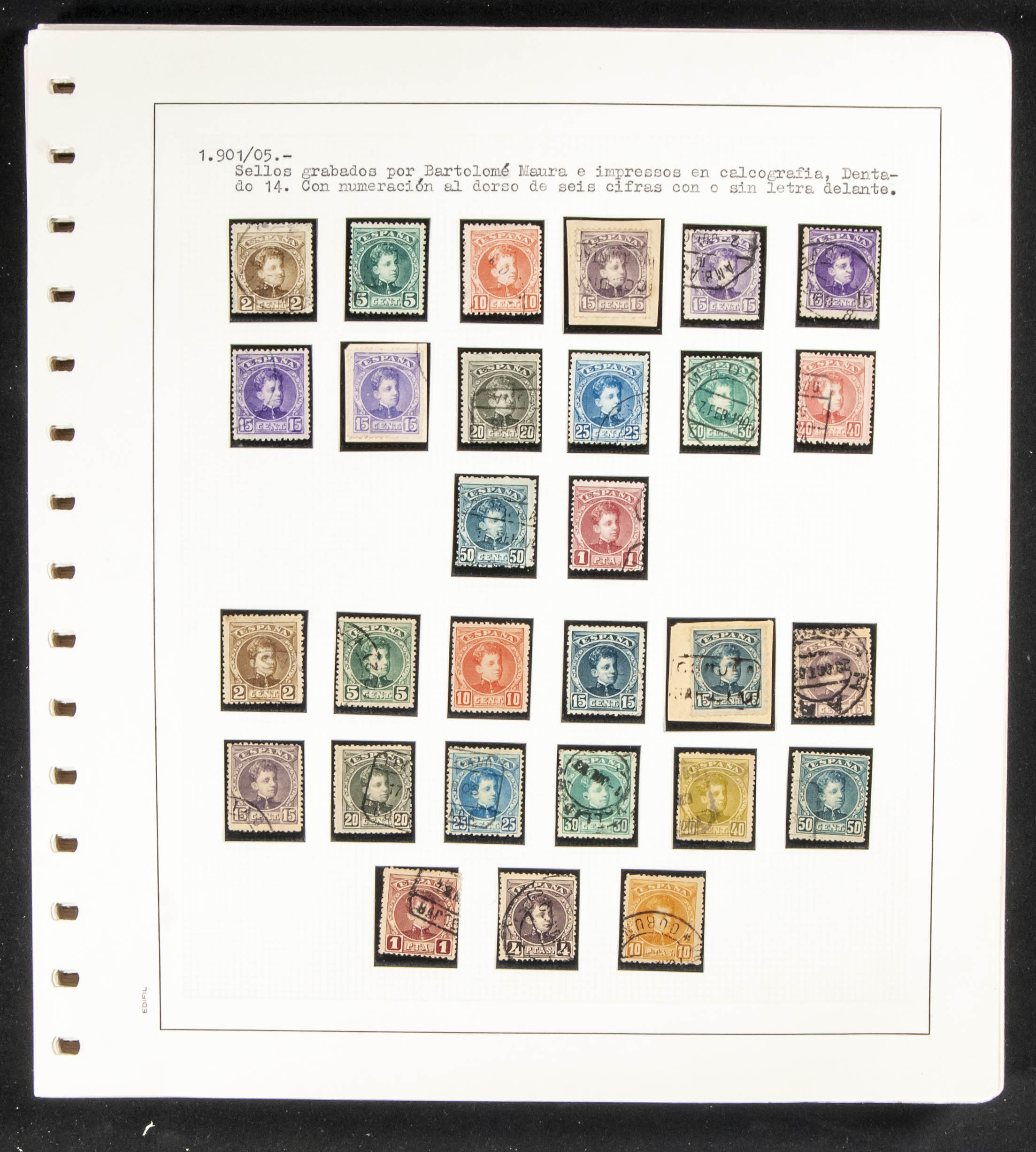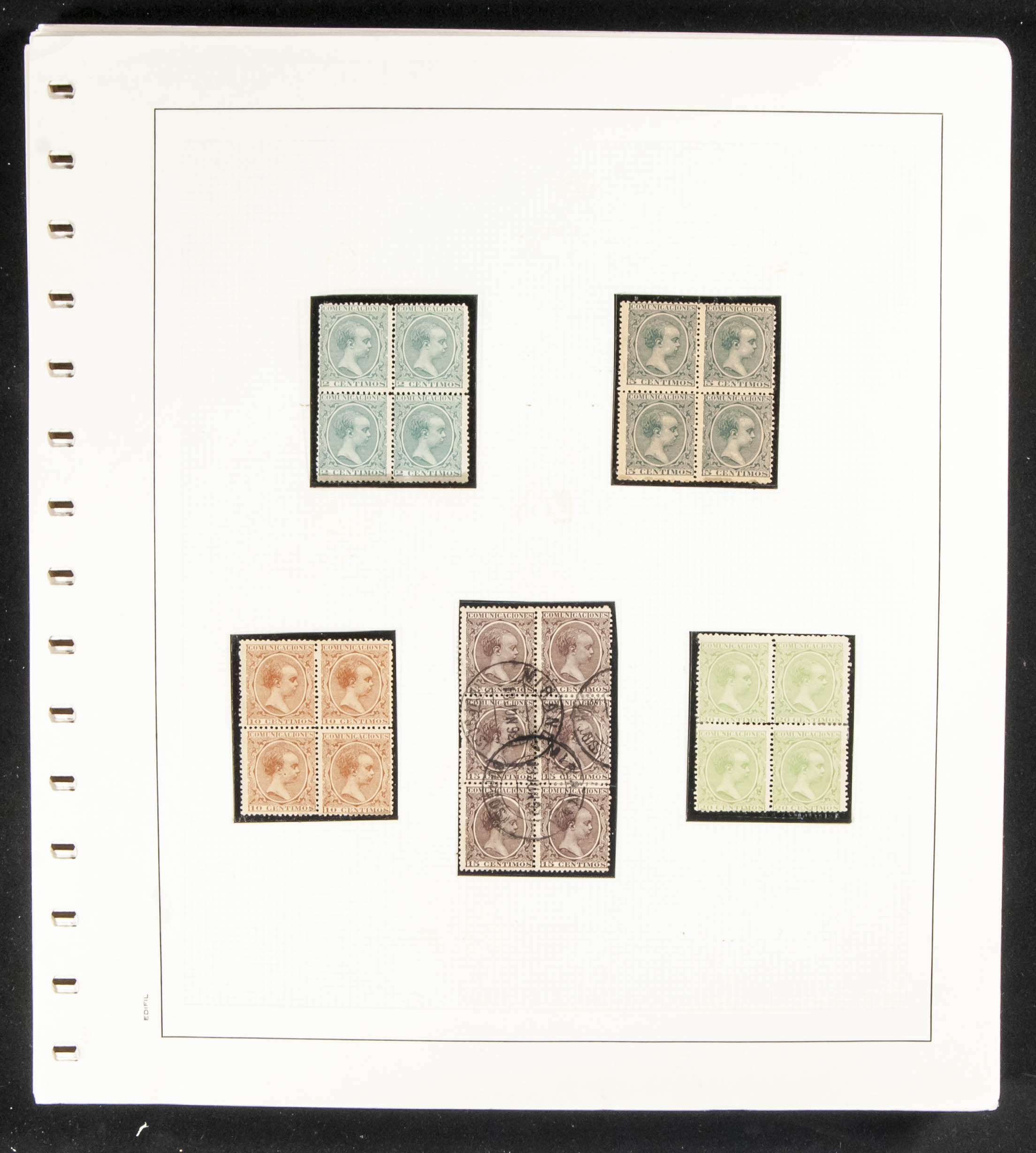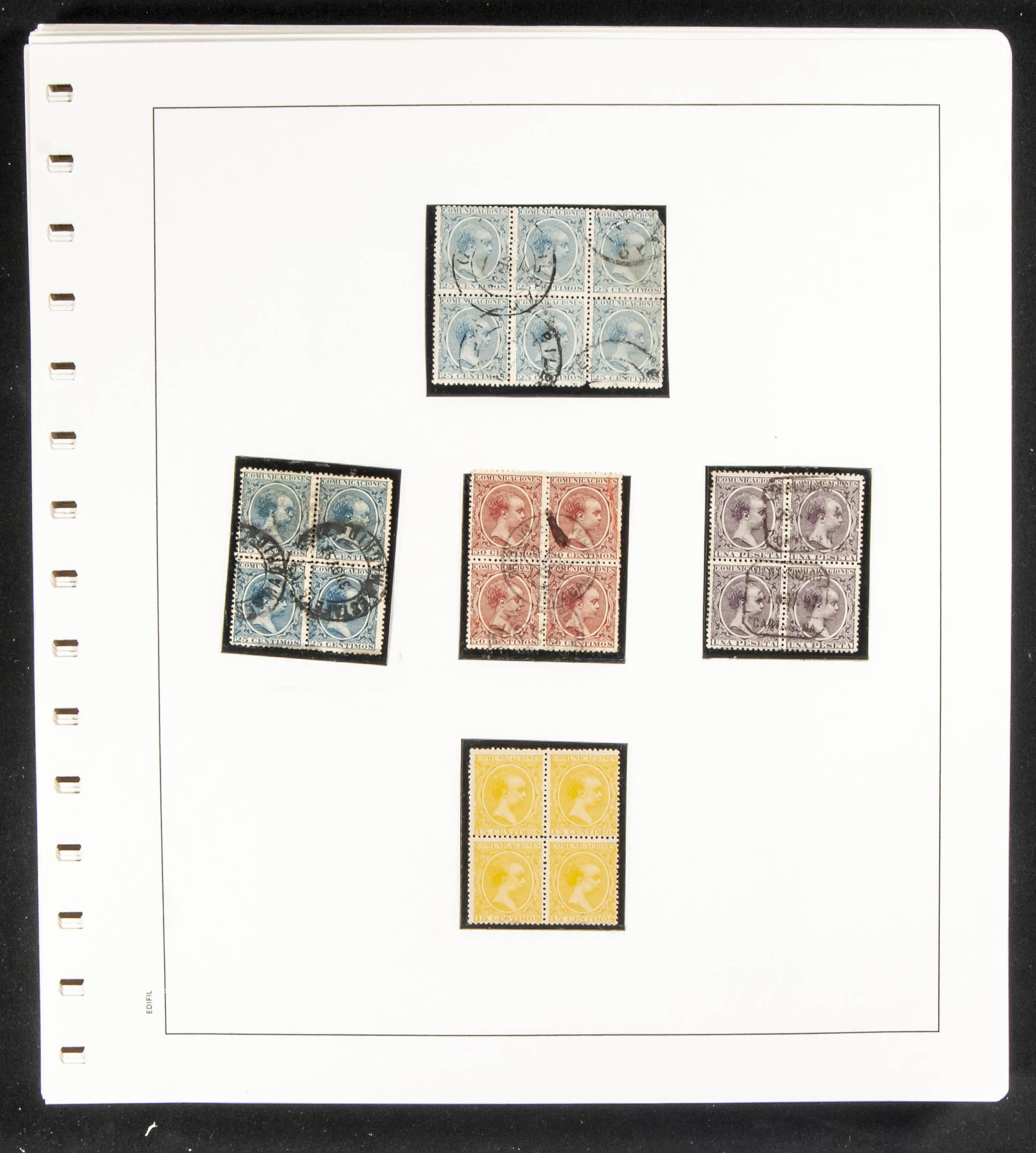 ★/(1889ca). Interesante conjunto de sellos, bloques, cartas y tarjetas postales entre 1889 y 1924 (Periodo Alfonso XIII), incluye series completas en nuevo y usado, correspondencia certificada, grandes bloques y variedades, matasellos especiales y fragmentos, además de sellos sueltos y algunas cartas de la emisión de Goya. A EXAMINAR.