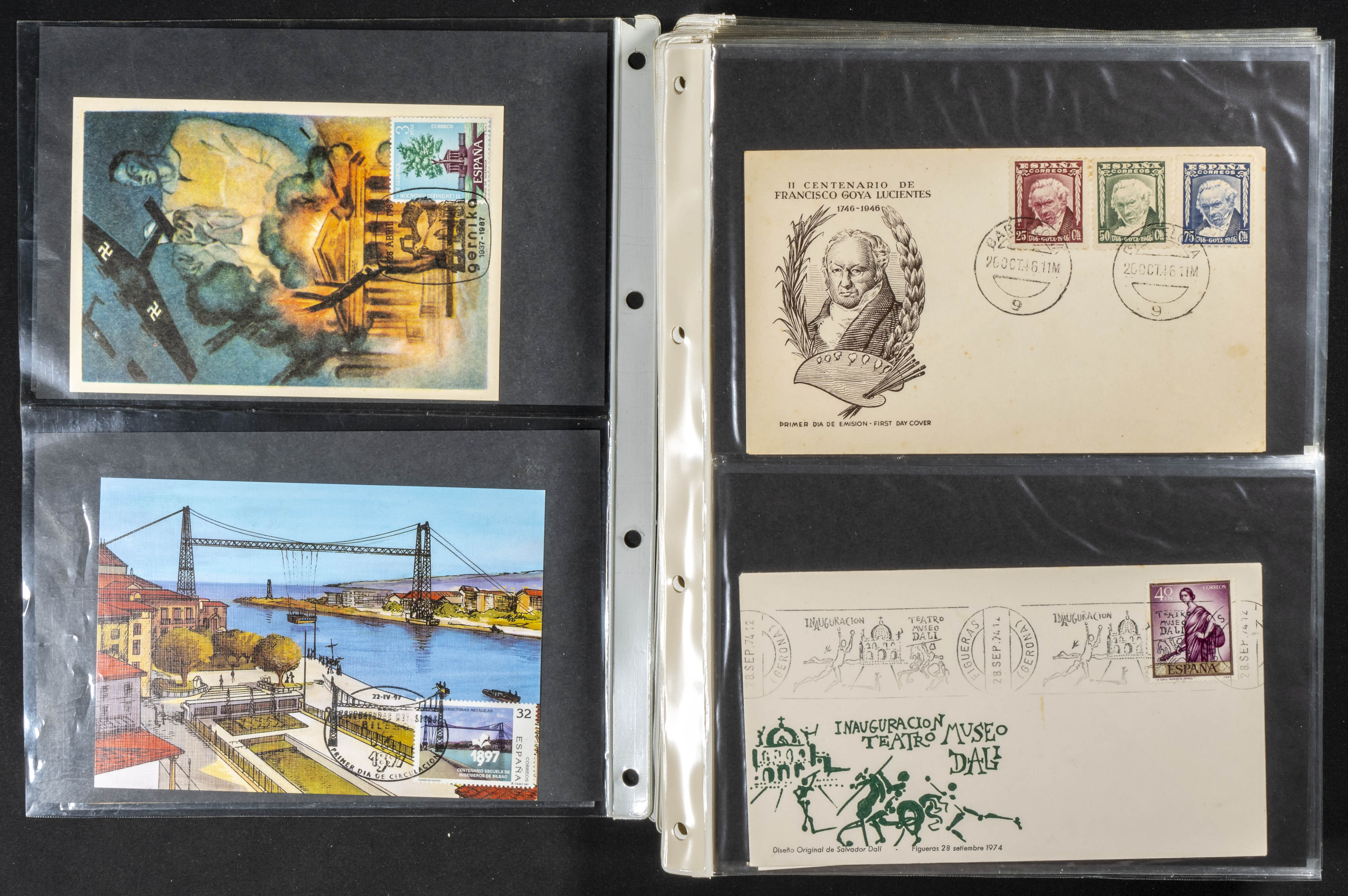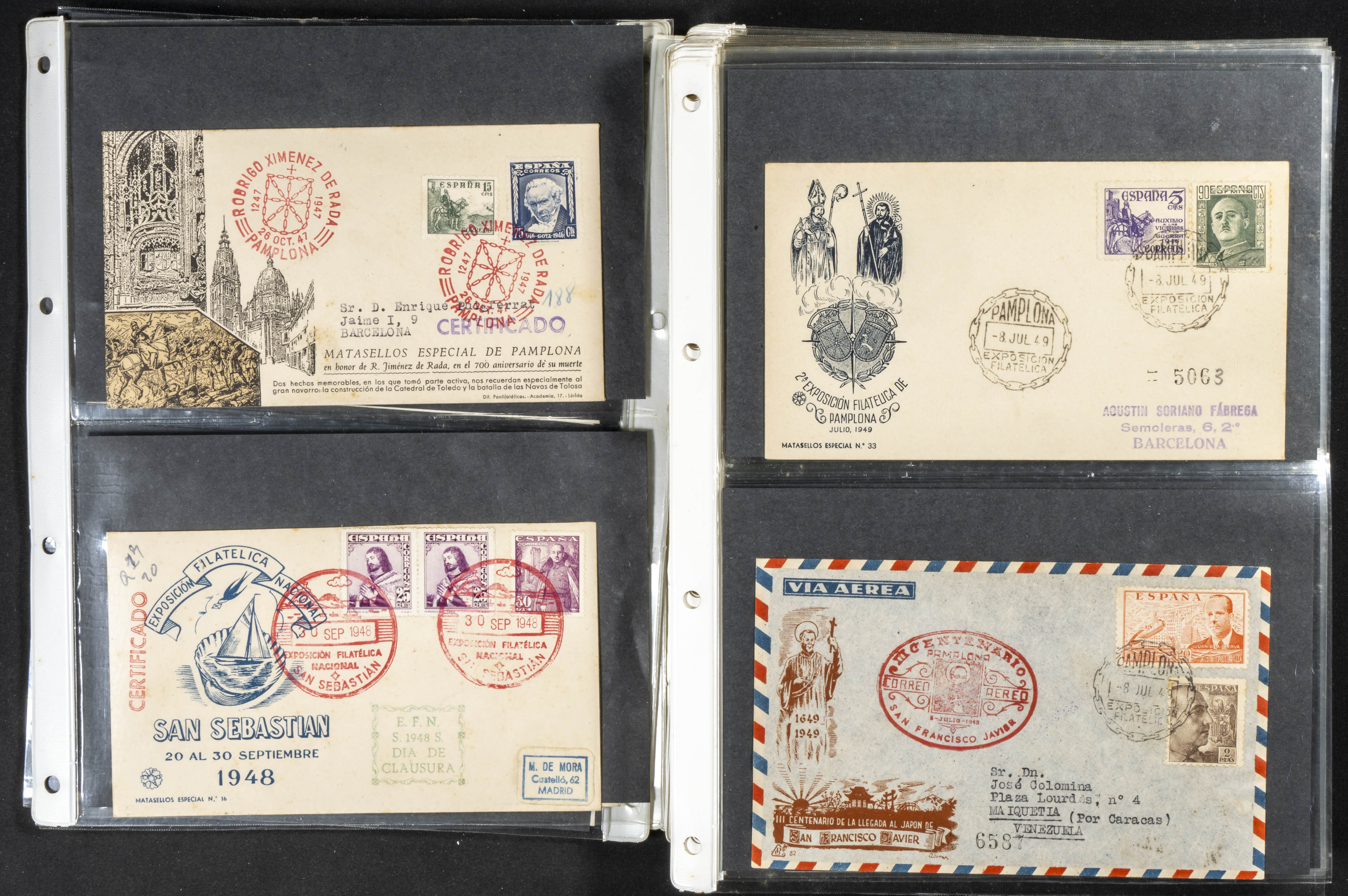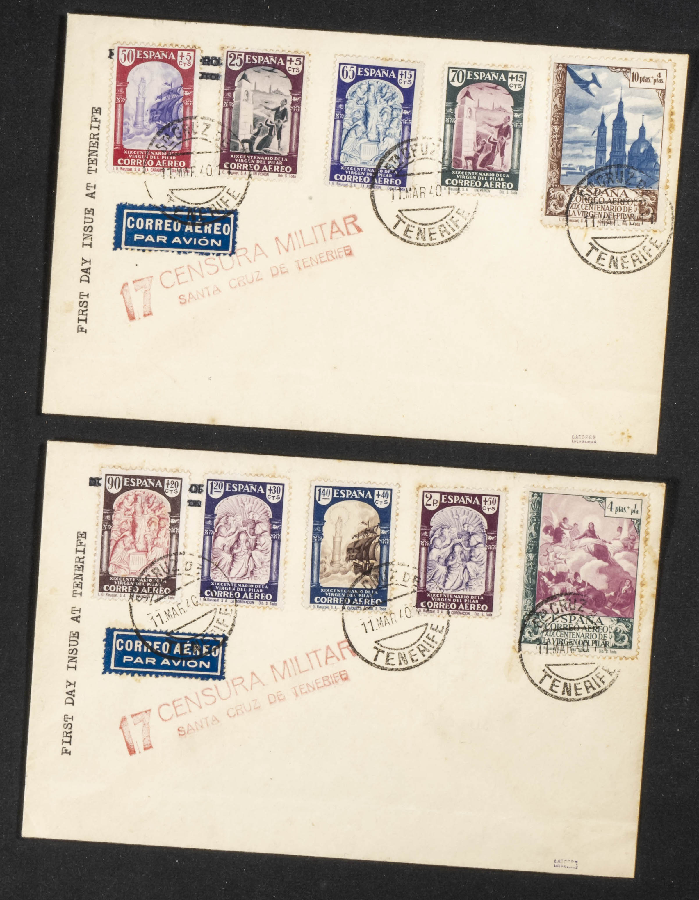 (1940ca). Conjunto de más de doscientos Sobres de Primer Día entre 1940 y 1982, muchos con matasellos del País Vasco e incluyendo media serie del Centenario del Sello (20 pts y 25 pts) en sobre y algunos valores del Pilar de 1940 en sobre, además de algún sobre extranjero. A EXAMINAR.