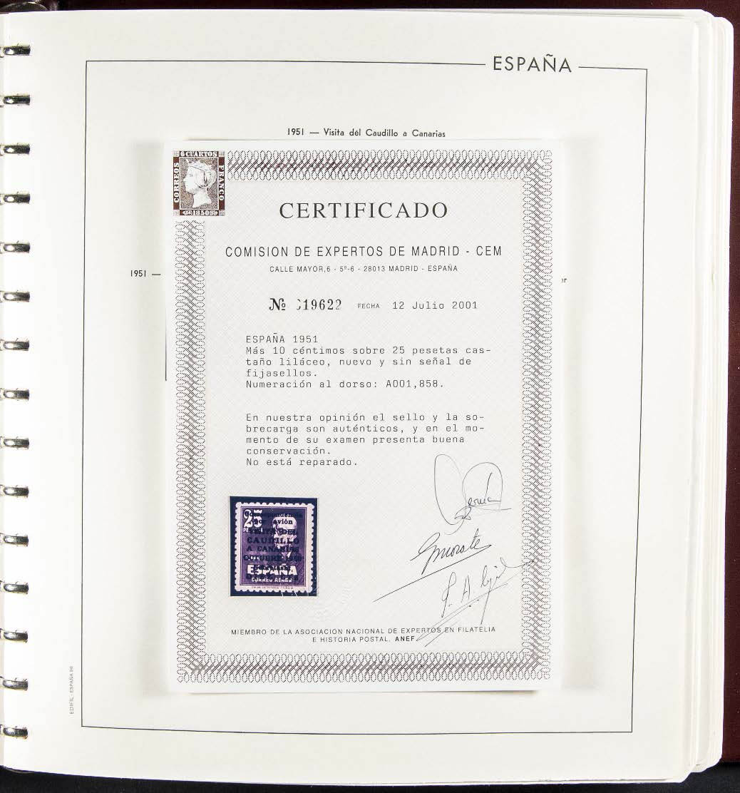★★(1950ca). Interesante colección completa entre 1950 y 2012, en nuevo y sin fijasellos, sólo a falta del Caudillo a Canarias sin número, incluye Centenario, Caudillo a Canarias terrestres y con número (este último con certificado) y "Legazpi y Sorolla" (con certificado)(buenas calidades en general). A EXAMINAR.