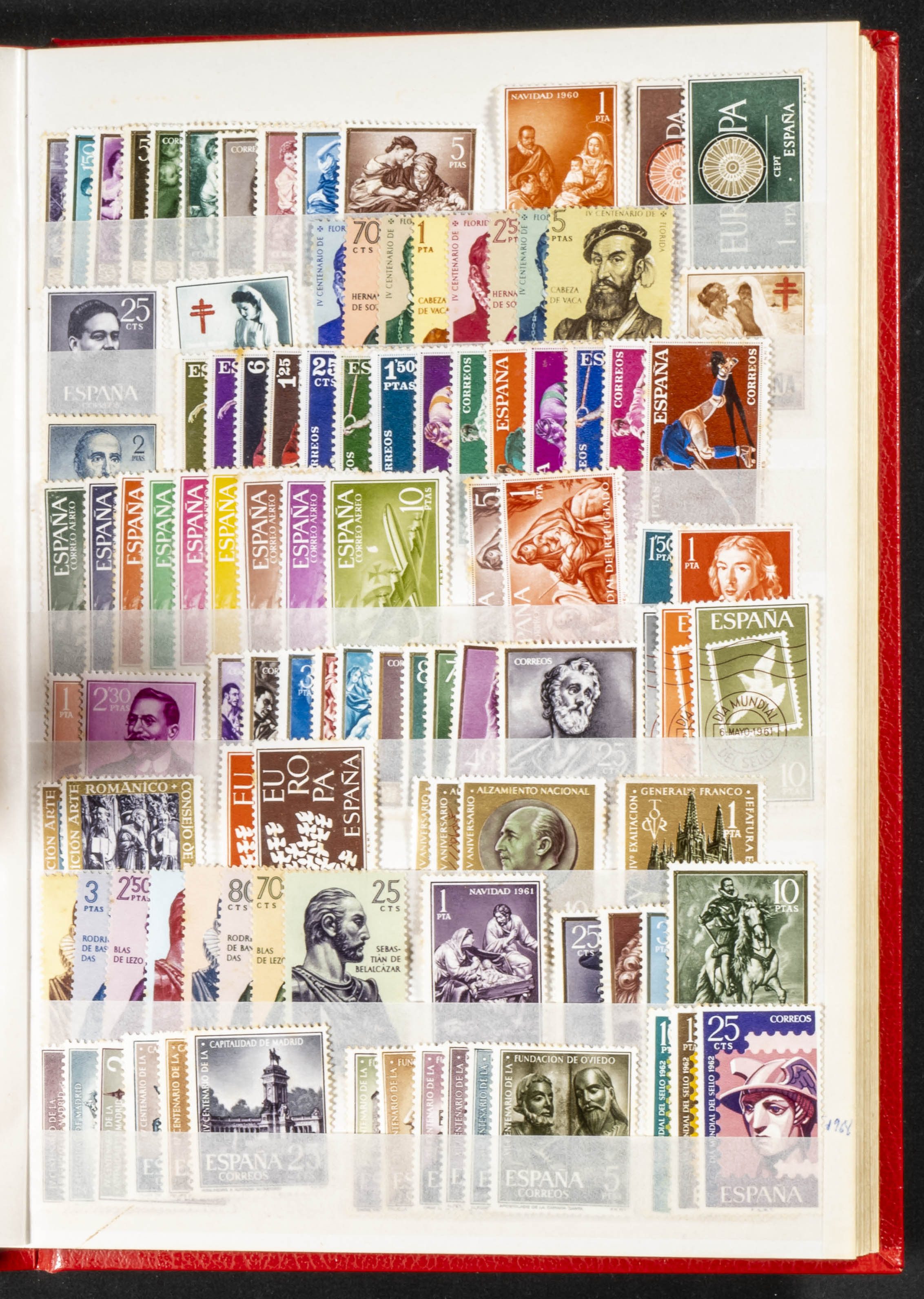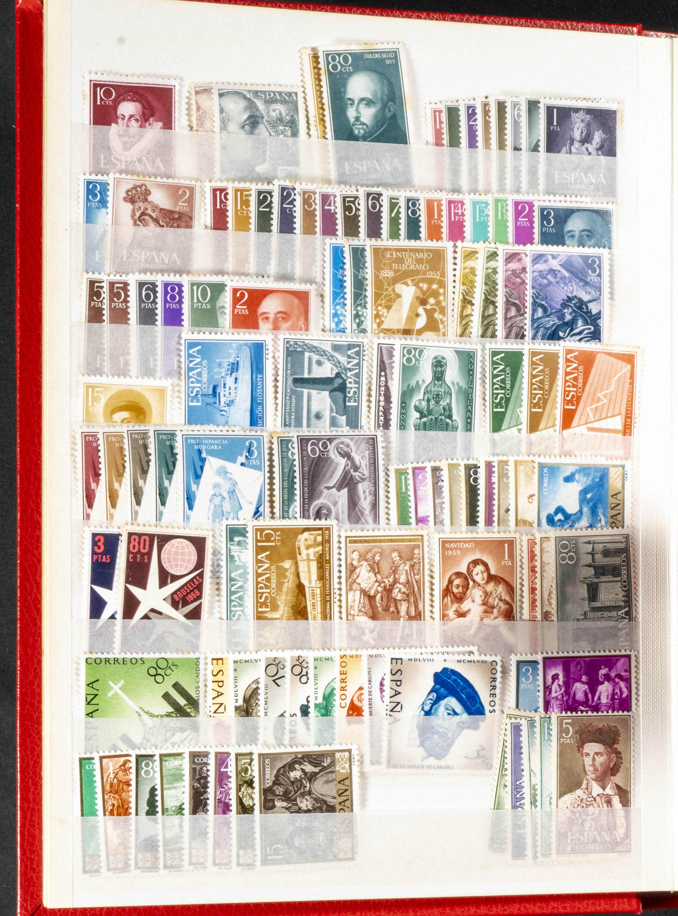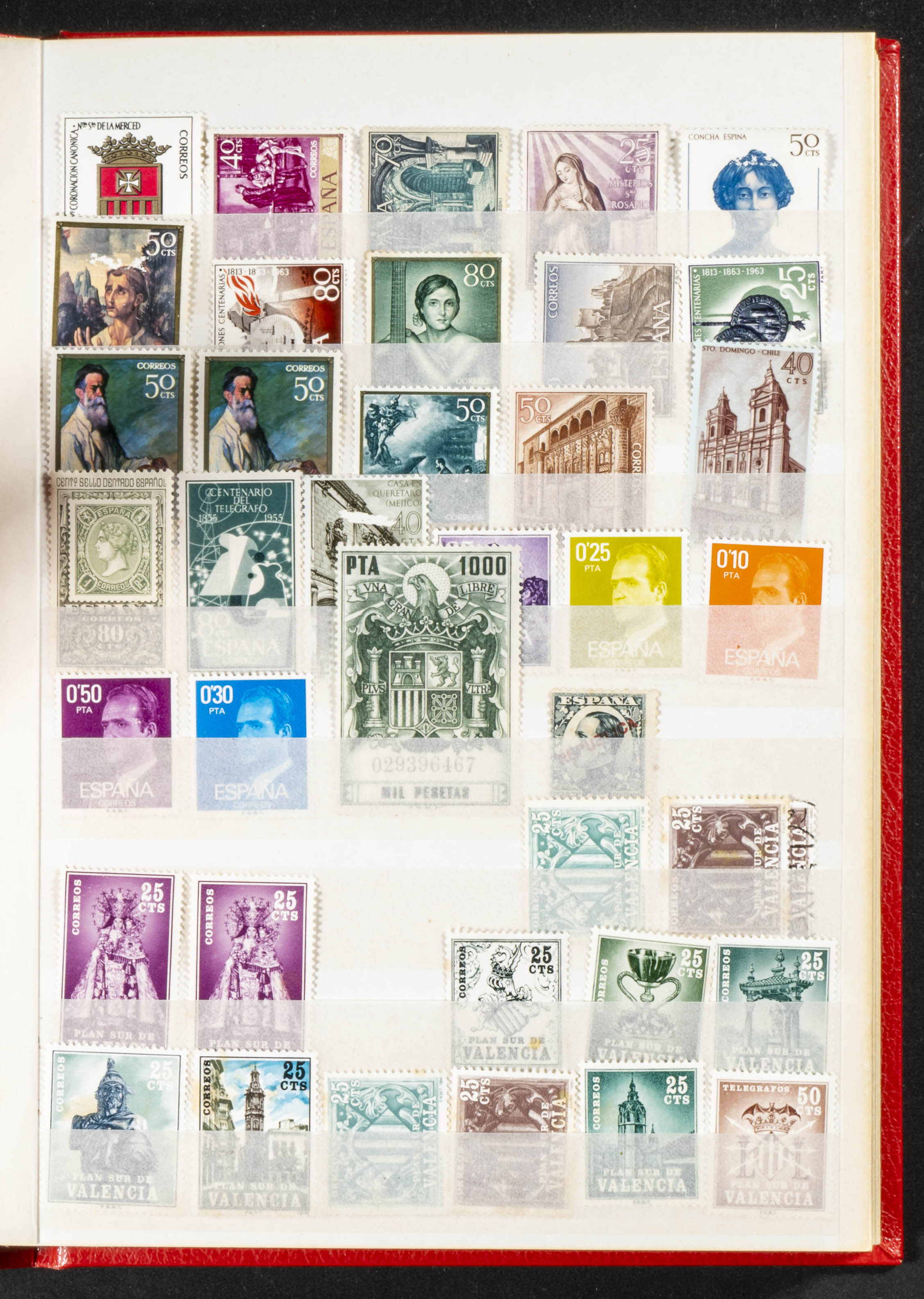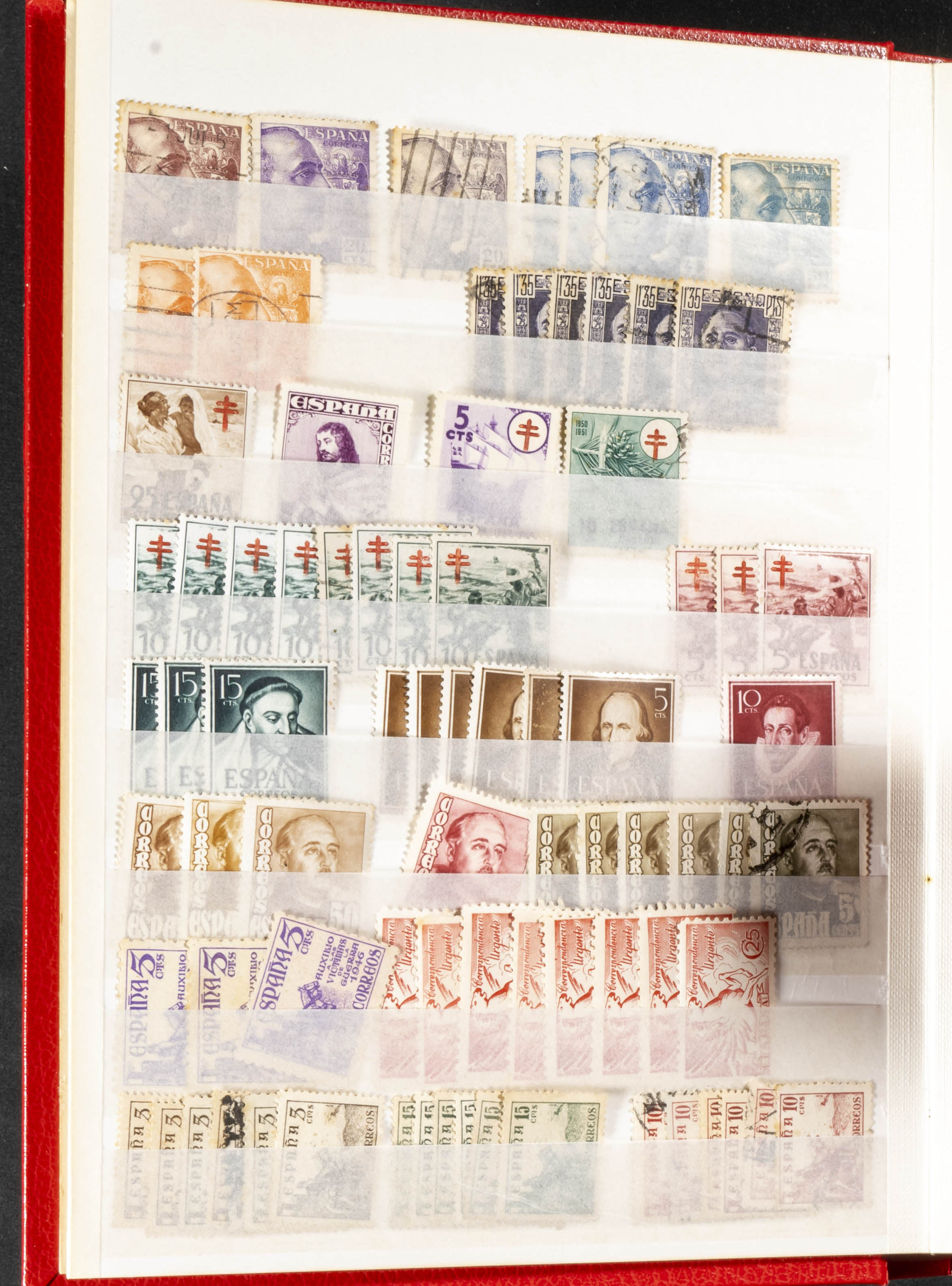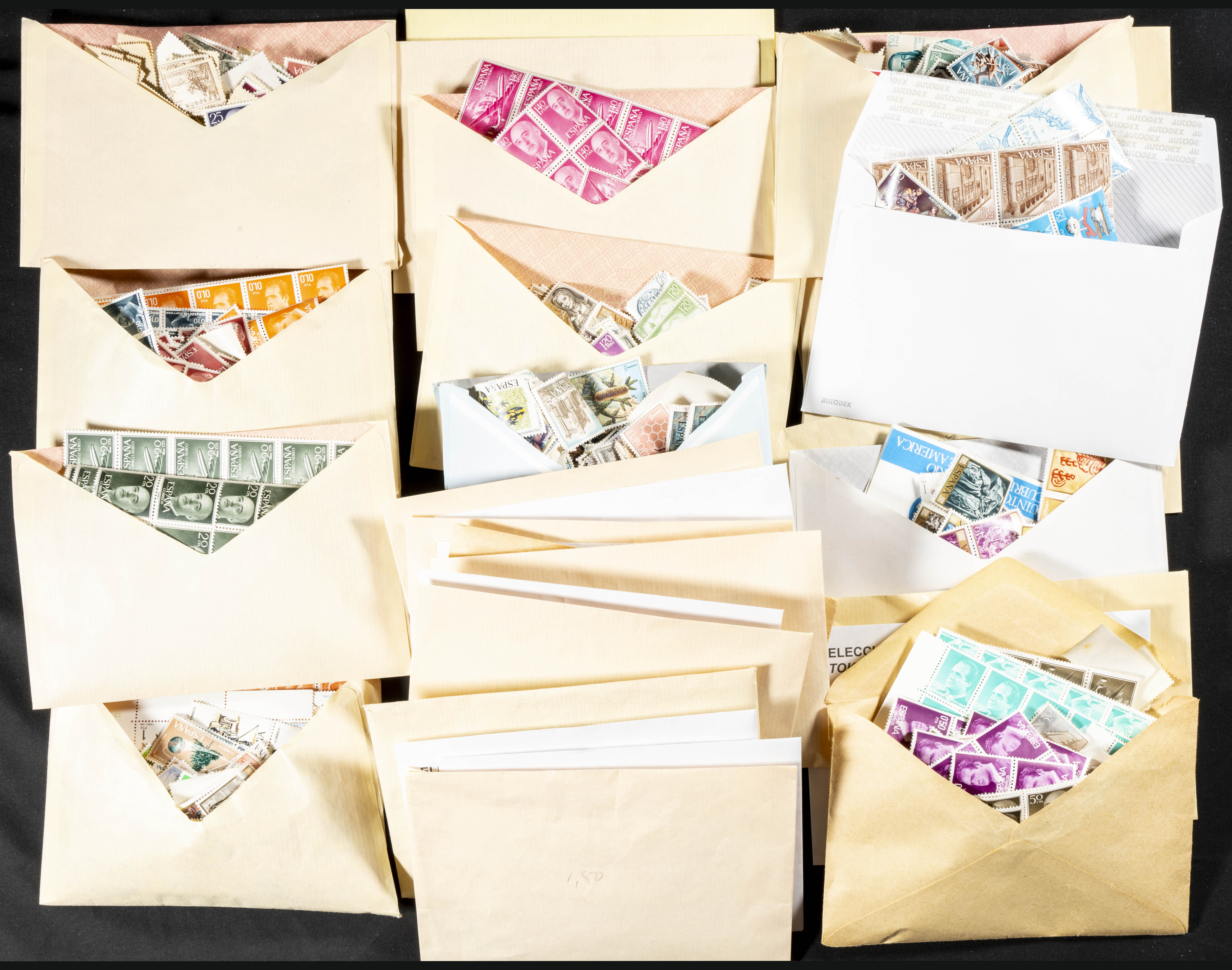 ★★(1955ca). Conjunto de miles de sellos sueltos y alguna serie completa del 2º Centenario, la mayoría posteriores a 1955 y hasta 1980, muchos organizados por valores en sobres, incluye más de cuarenta juegos de trajes regionales a falta de Pontevedra y varios juegos de Plan Sur de Valencia. A EXAMINAR.
