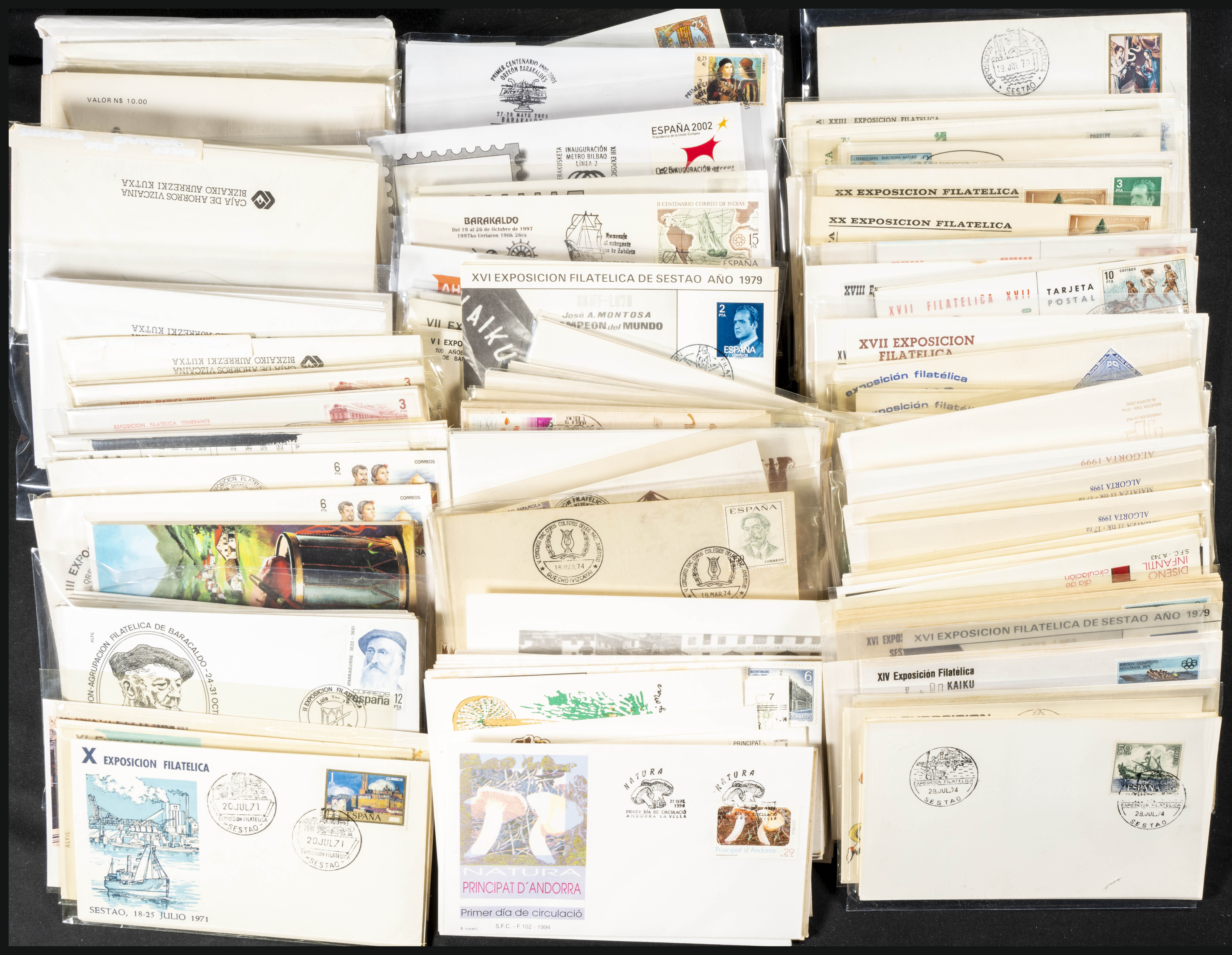 (1960ca). Conjunto de más de mil trescientos Sobres de Primer Día, Tarjetas Postales y algún Entero Postal entre 1960 y 1995 con matasellos conmemorativos o especiales del País Vasco. A EXAMINAR.