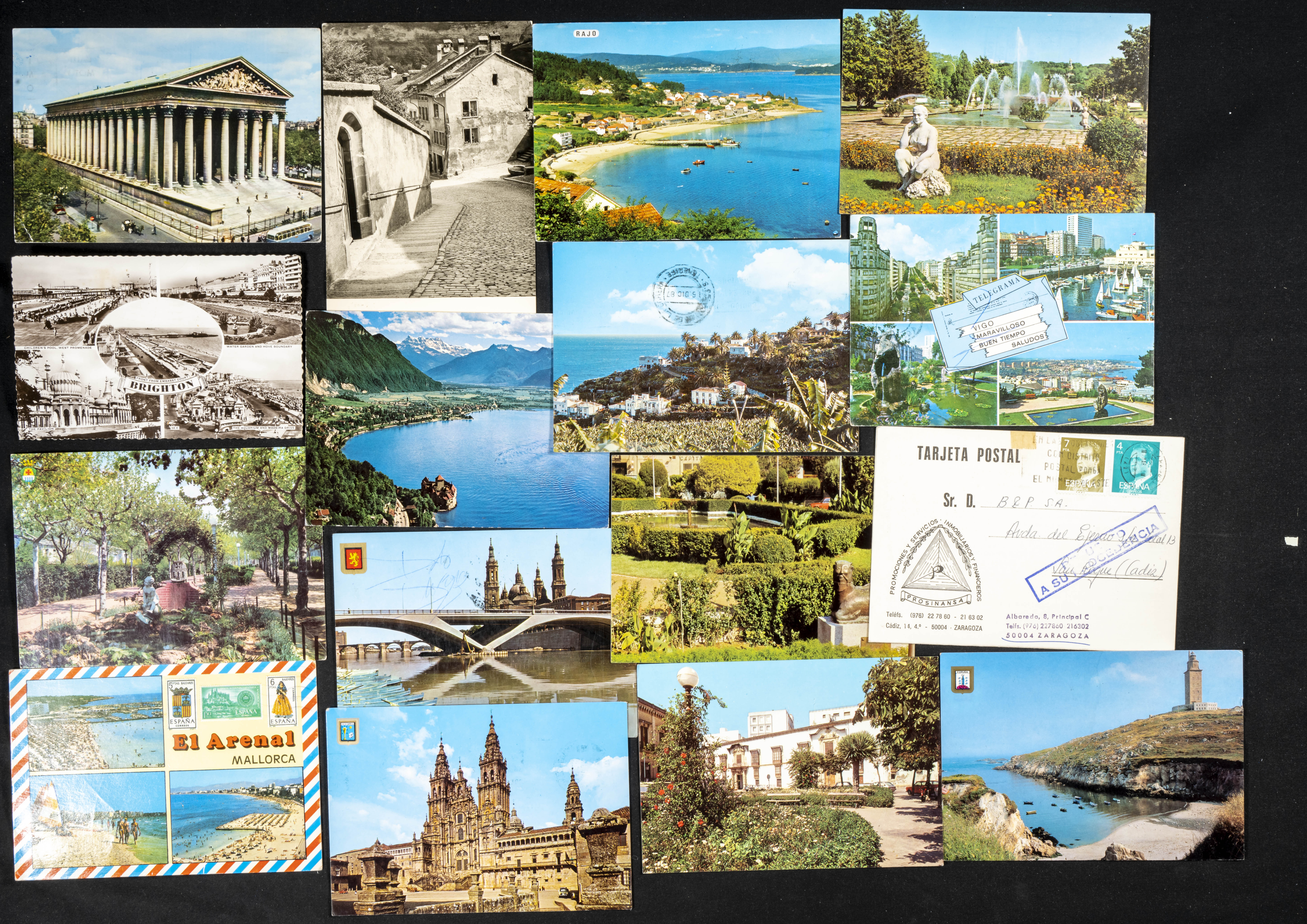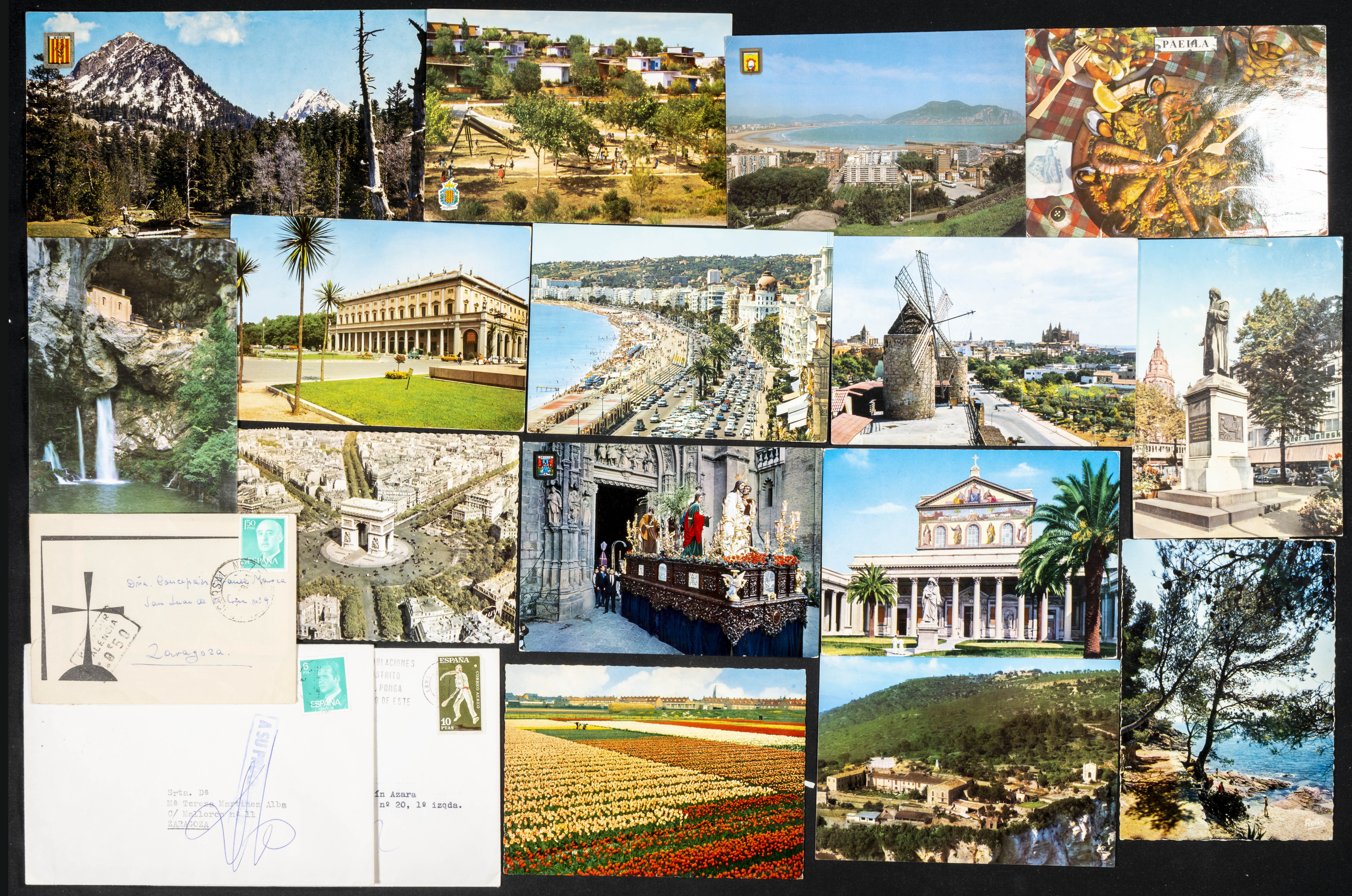 (1963ca). Interesante conjunto de cincuenta Tarjetas Postales y dos cartas circuladas entre 1963 y 1988, algunas del Extranjero a España y todas con marcas especiales de Tasa, Lista, Devolución, etc, muy curiosas y poco usuales. A EXAMINAR.