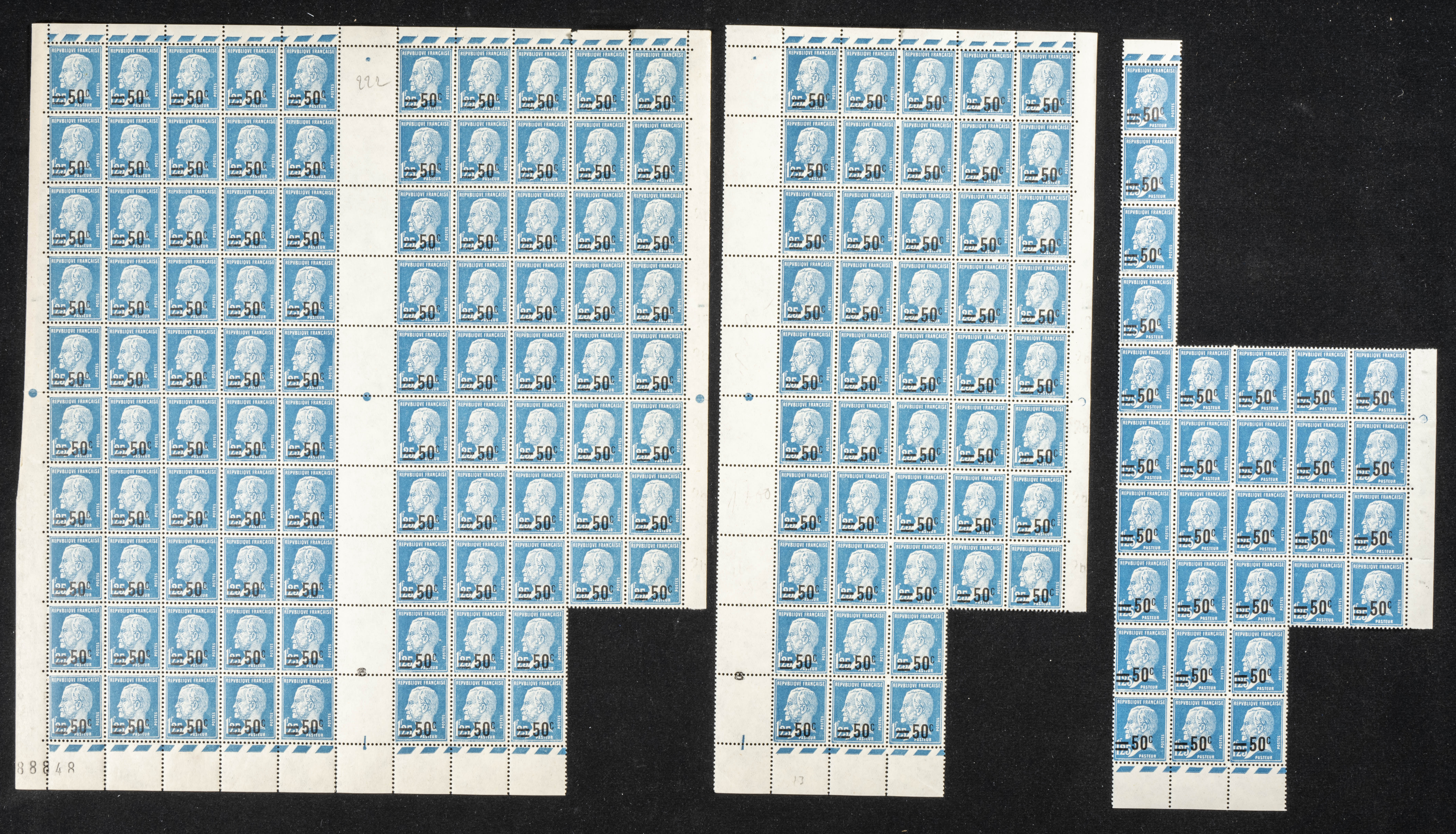 ★★Yvert 222(172), 227(126). 1926. Ciento setenta y dos sellos de 50 cts sobre 1´25 f azul (Pasteur) y ciento veintiséis de 90 cts sobre 1´05 f naranja (Sembradora) de Francia. A EXAMINAR. Yvert 2023: 1.573 Euros