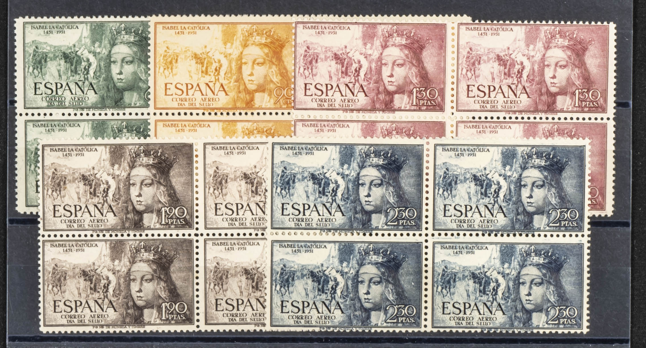 ★★ 1097/01(4). 1951. Cuatro series completas. ISABEL (aérea). A EXAMINAR. Edifil 2024: 140 Euros