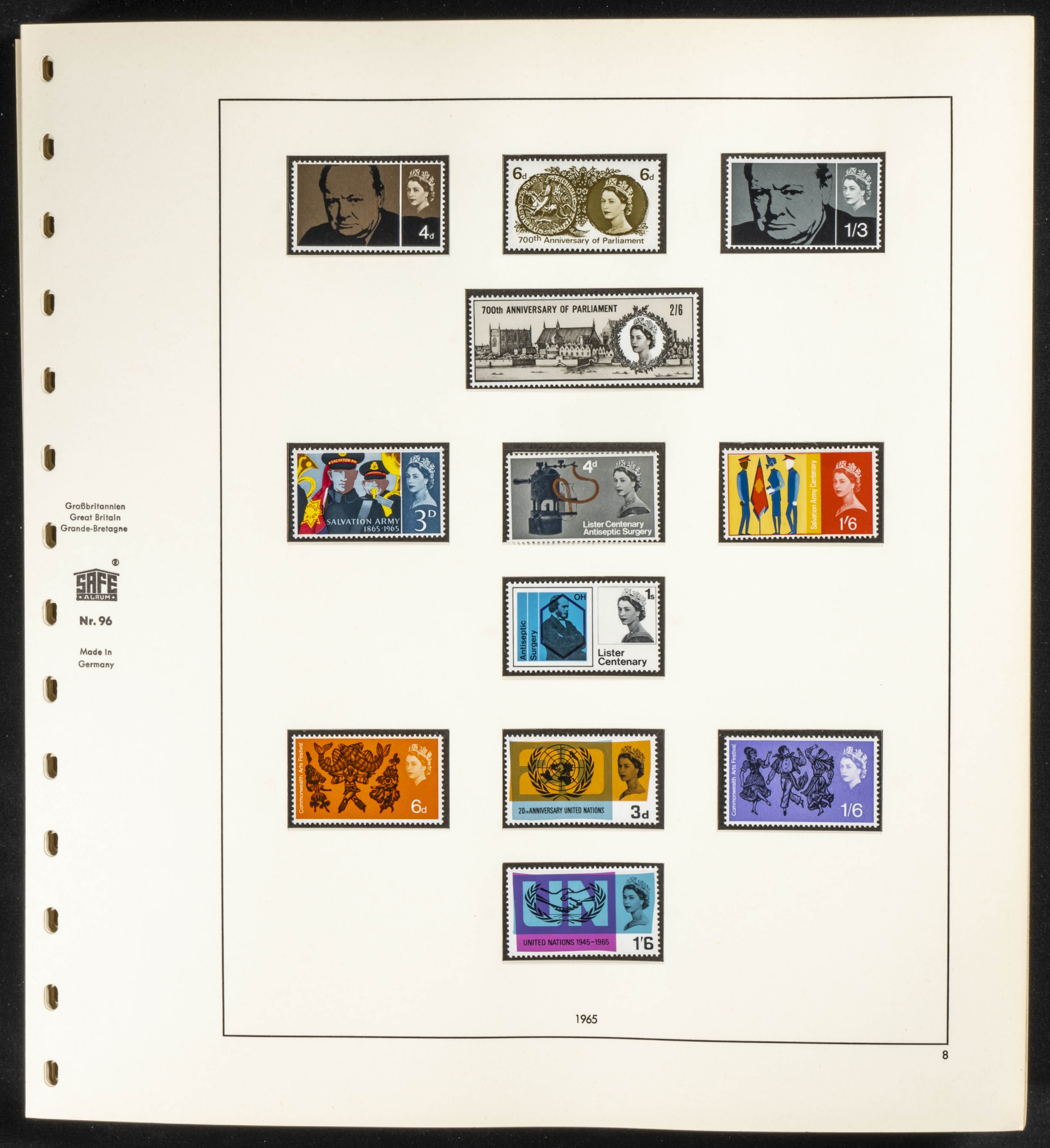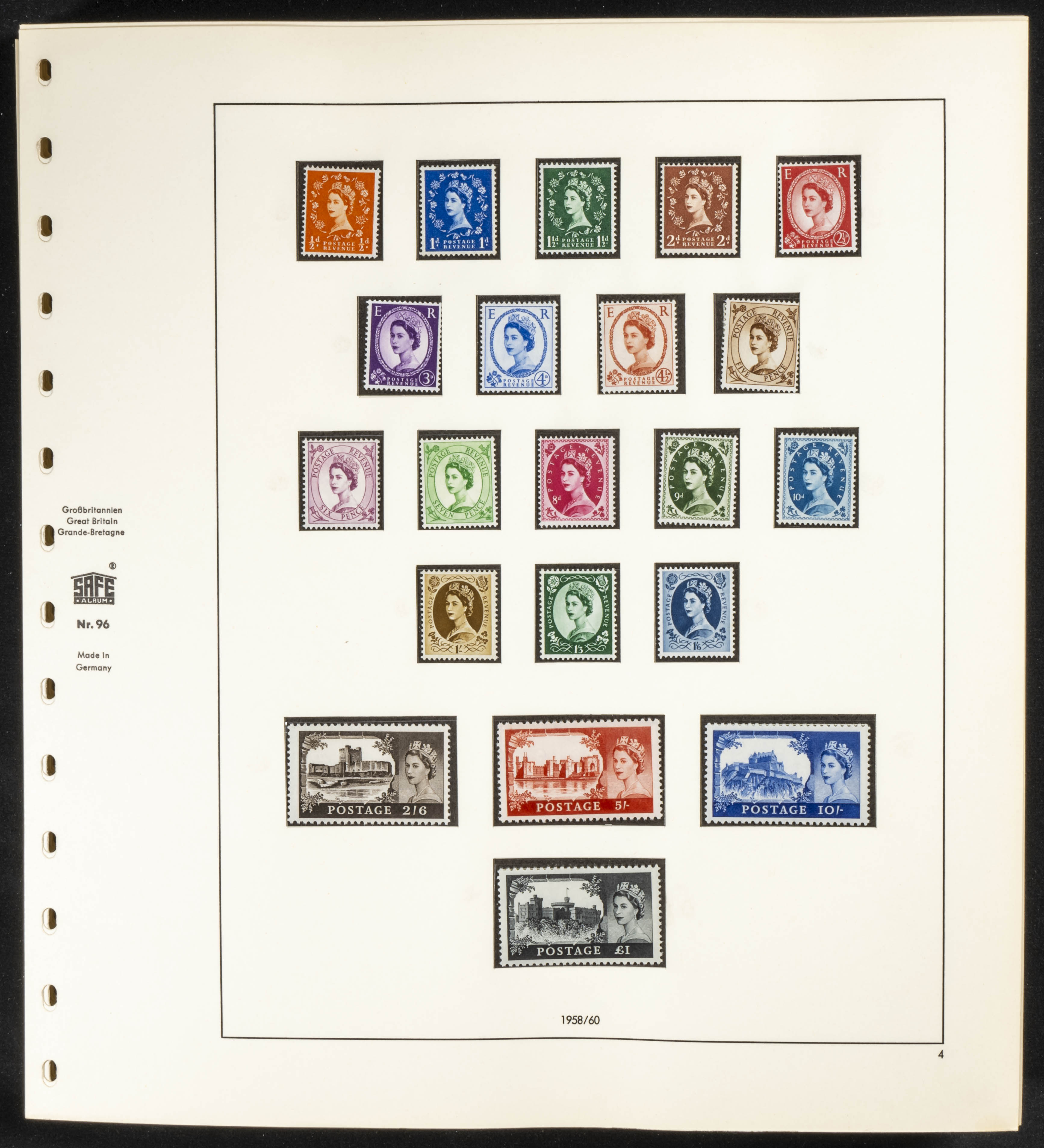 ★★(1952ca). Colección muy completa de Gran Bretaña entre 1952 y 1983, en nuevo y sin fijasellos e incluyendo Guernsey entre 1958 y 1983 completo, Jersey entre 1969 y 1983 completo y Man entre 1973 y 1982 completo, todo nuevo (montado en álbumes Safe). ALTO VALOR DE CATALOGO. A EXAMINAR.