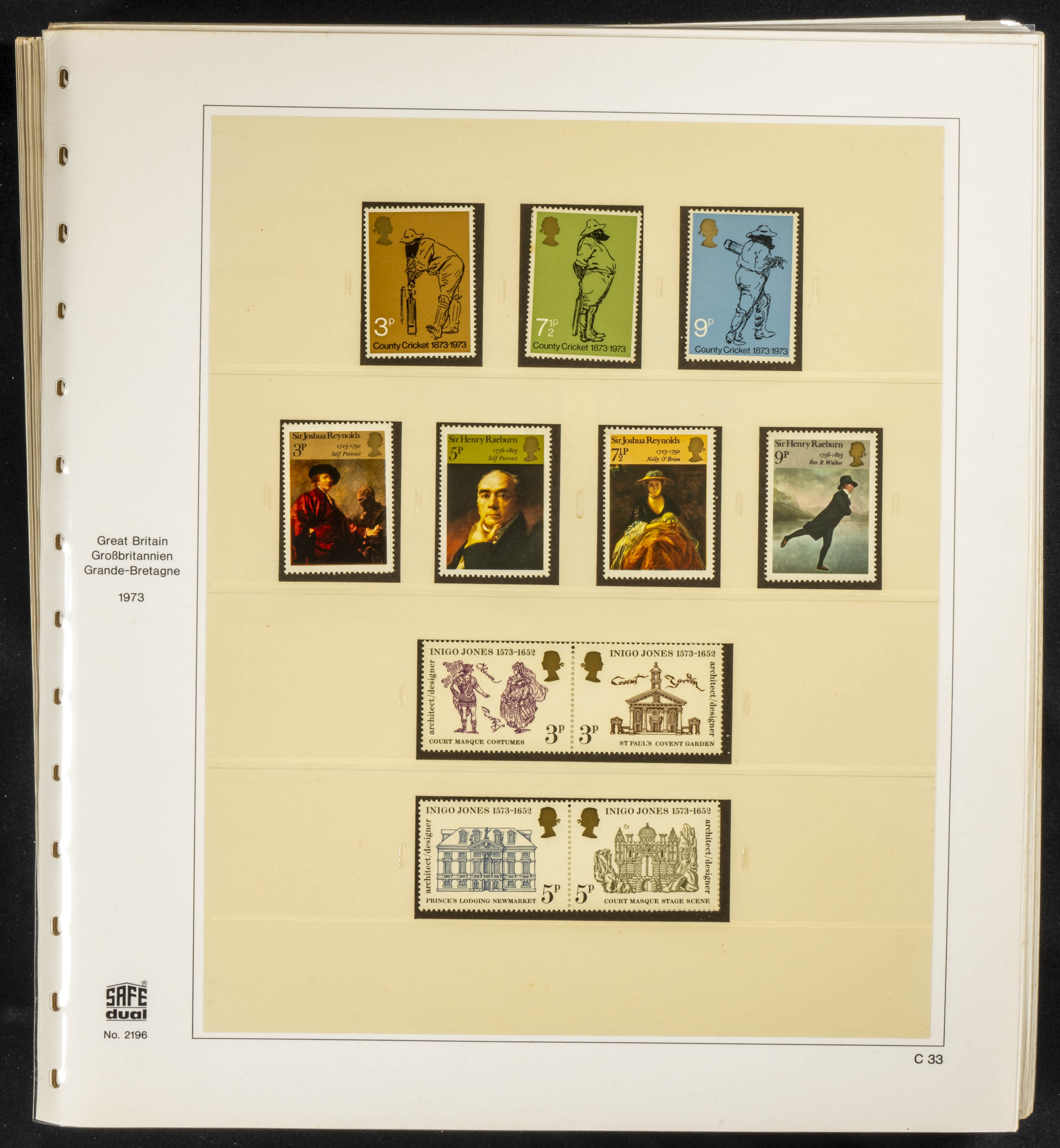 ★★(1972ca). Colección muy completa de Gran Bretaña entre 1972 y 1985 y con las series básicas entre 1952 y 1985 (algunas faltas), nueva sin fijasellos e incluyendo Guernsey entre 1970 y 1986 completo, Jersey entre 1969 y 1989 completo y Man entre 1973 y 1986 completo (es posible que falte algún sello de escasa importancia en Islas del Canal). ALTO VALOR DE CATALOGO. A EXAMINAR.