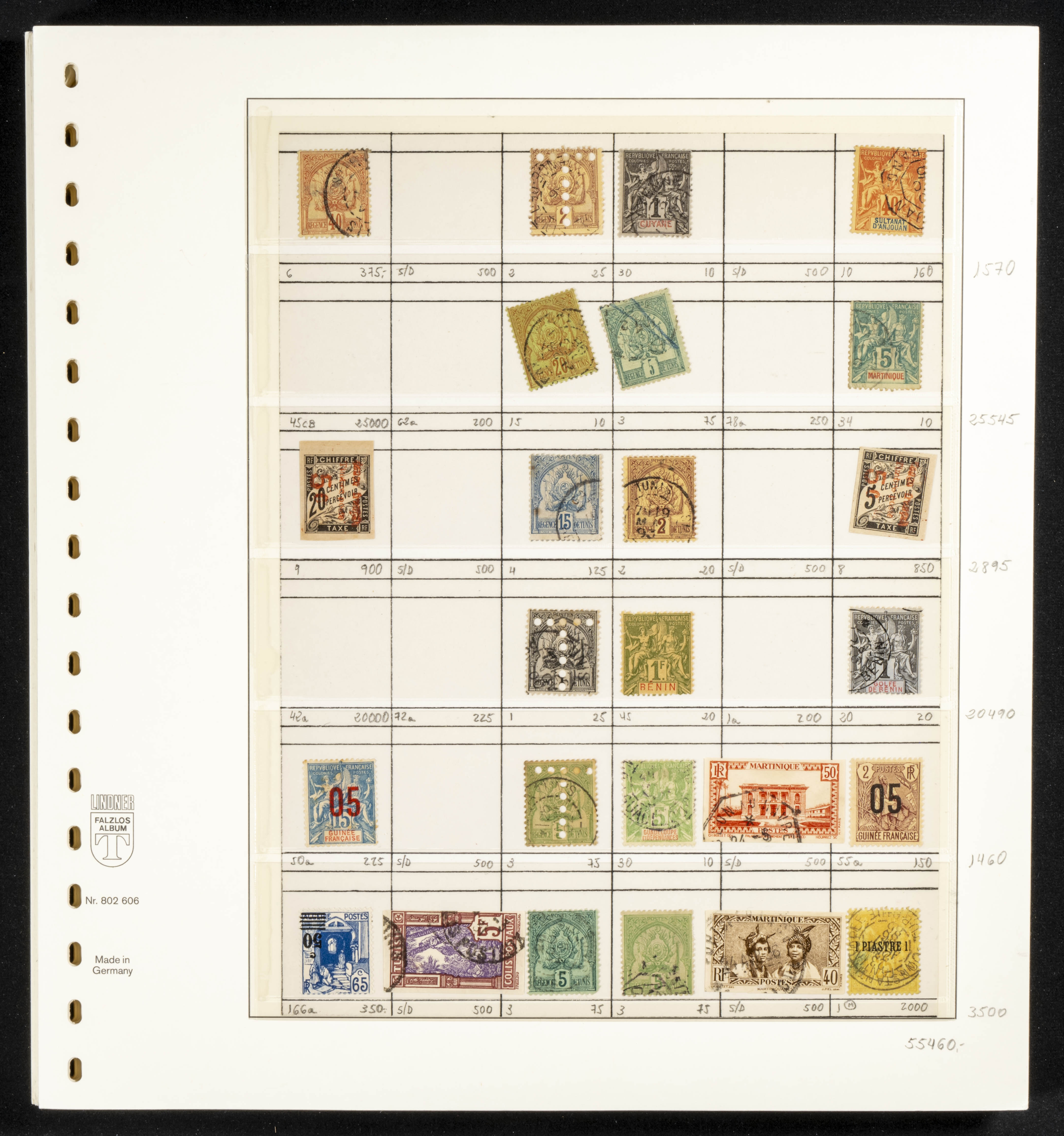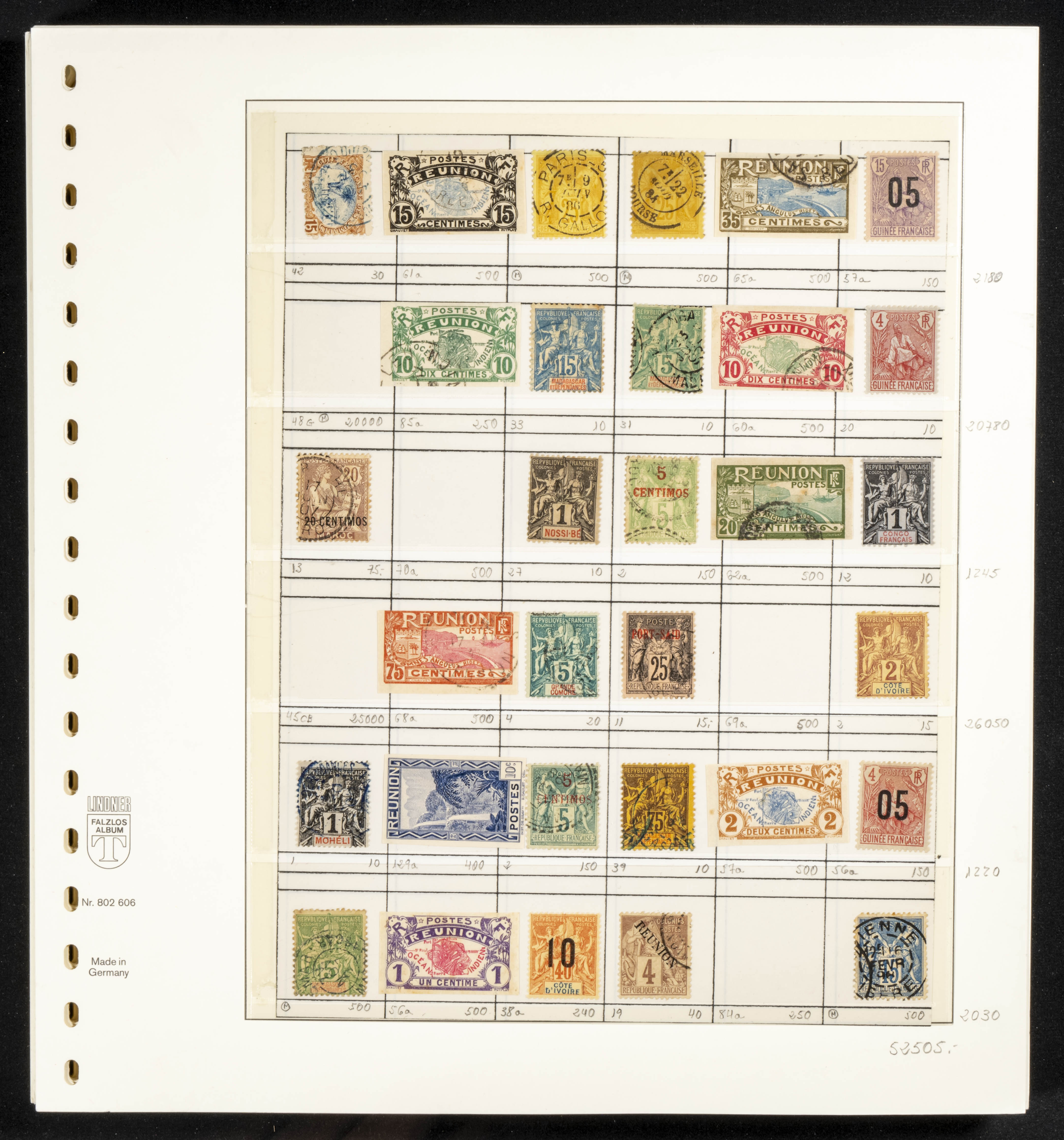 (★)/(1860ca). Interesantísimo conjunto de varios cientos de sellos clásicos y emisiones posteriores de diversos países, la mayoría de Ultramar (Colonias Francesas e Inglesas), entre 1860 y 1930 en nuevo y usado, montados en hojas de álbum con indicación del número Yvert (algún sello falso), incluyendo dos clasificadores pequeños con sellos clásicos. ALTISIMO VALOR DE CATALOGO. A EXAMINAR.