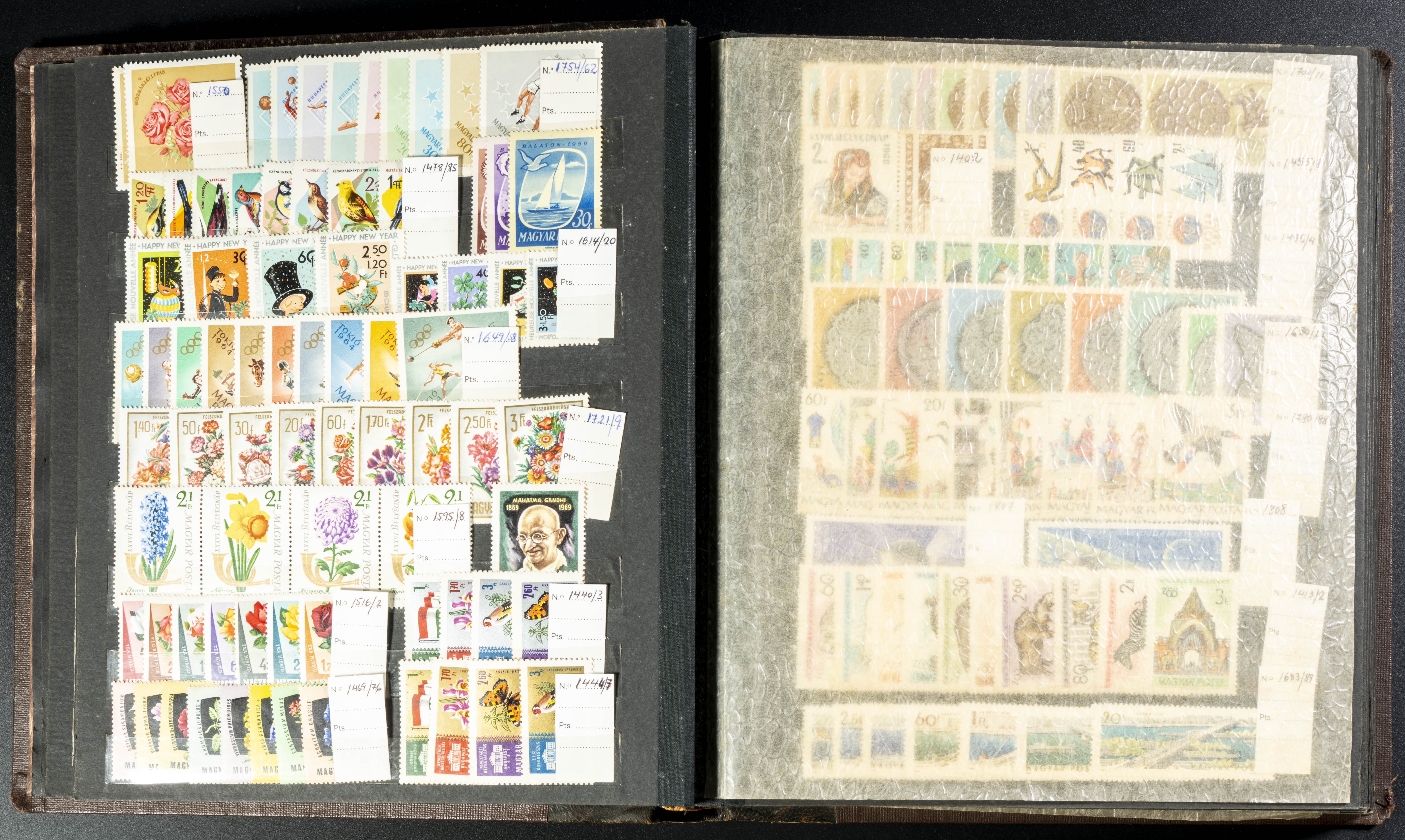 ★★/★(1940ca). Interesante conjunto de colecciones de diversos países como Estados Unidos, Filipinas, Ghana, Hungría, Japón y Surinam, en nuevo y montados en clasificadores y etiquetados con número Yvert, la mayoría sin fijasellos, series temáticas comprendidas entre 1930 y 2000. ALTO VALOR DE CATALOGO. A EXAMINAR.