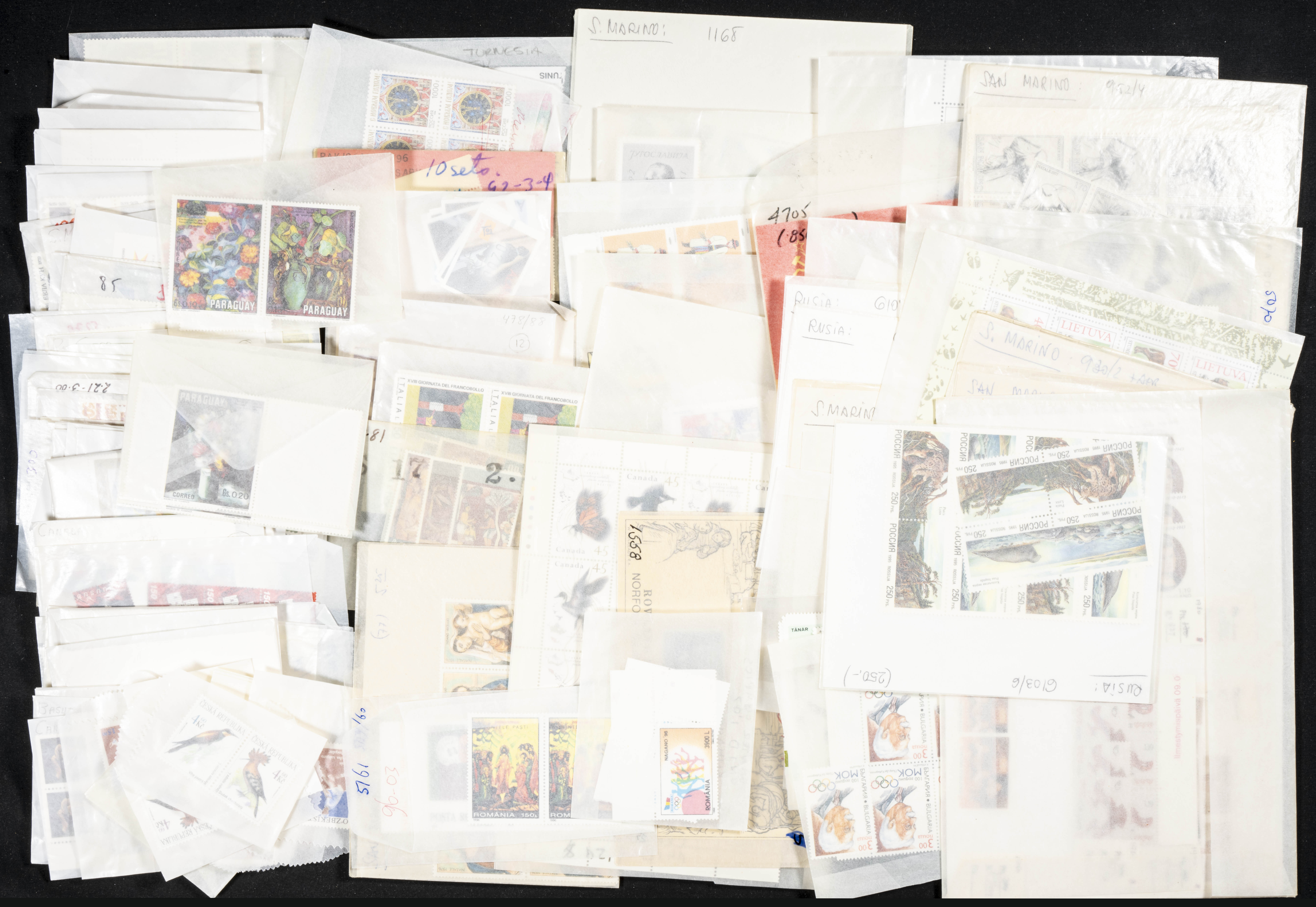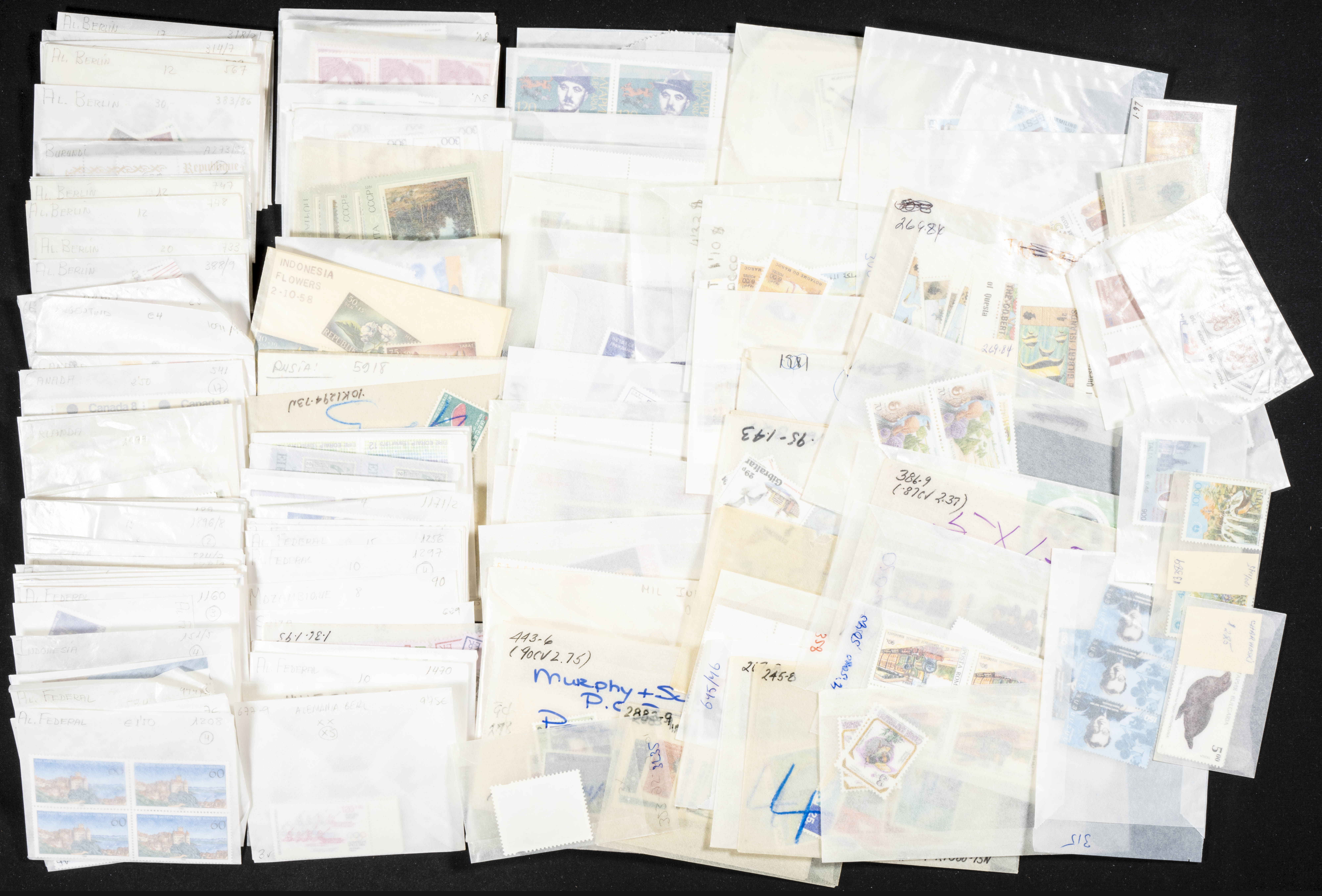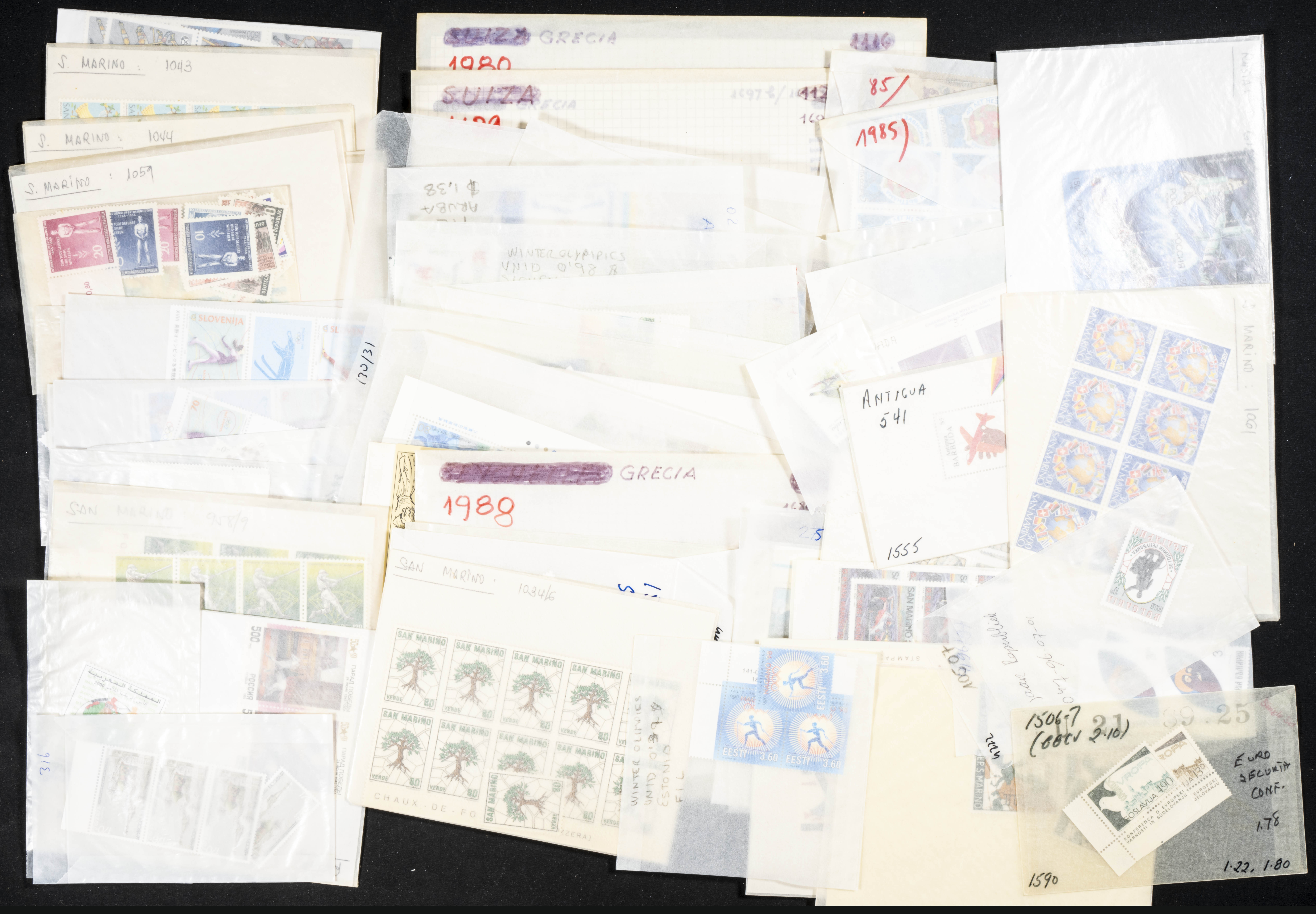 ★★/★(1940ca). Interesante conjunto-stock de más de mil series completas de diversos países entre 1940 y 2000, en nuevo y con algunas repeticiones, hasta veinticinco series de cada, la mayoría temáticas e incluyendo series sin dentar y alguna otra variedad, todo en sobres de cristal con indicación del número de catálogo Yvert. ALTISIMO VALOR DE CATALOGO. IMPRESCINDIBLE EXAMINAR.