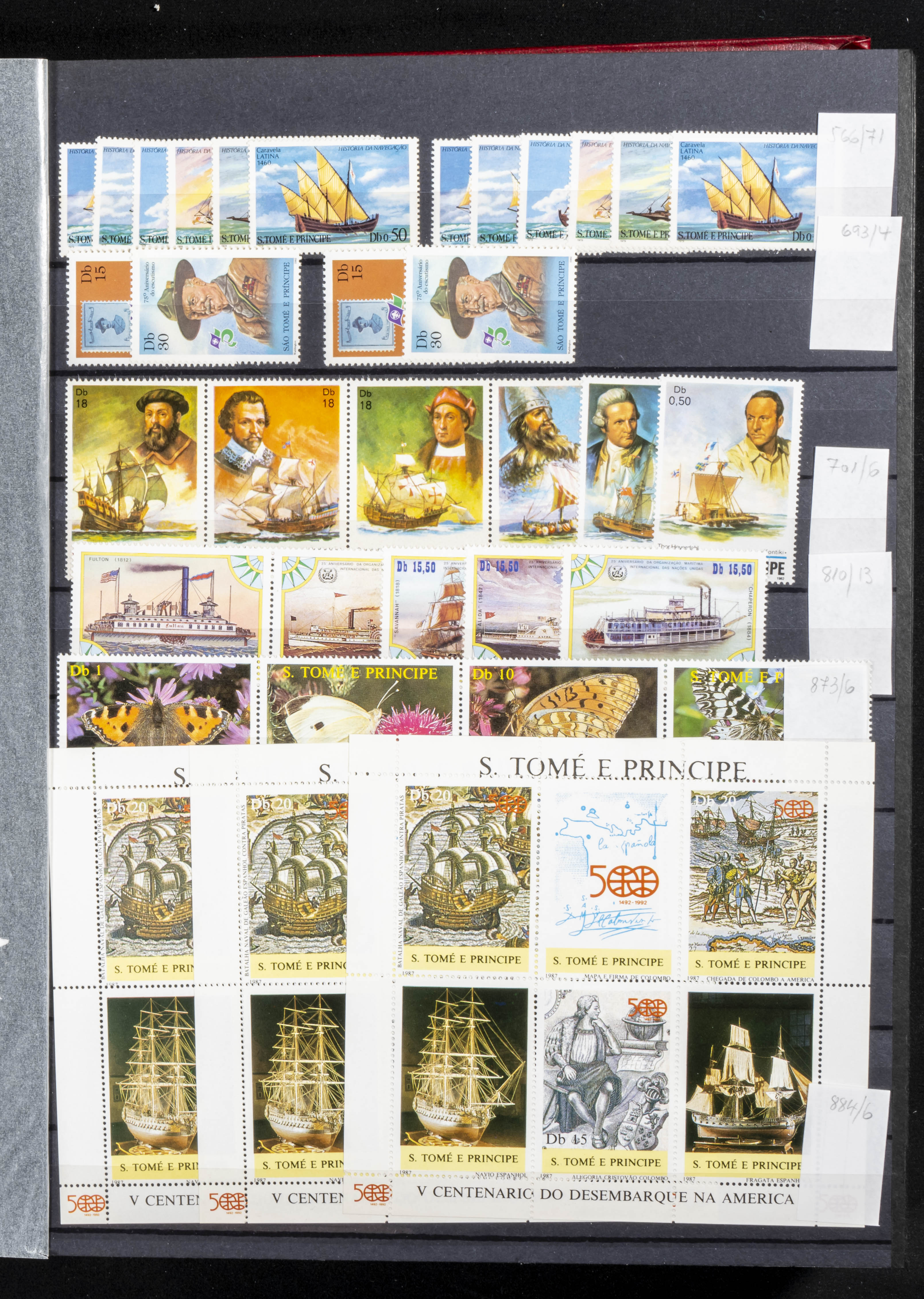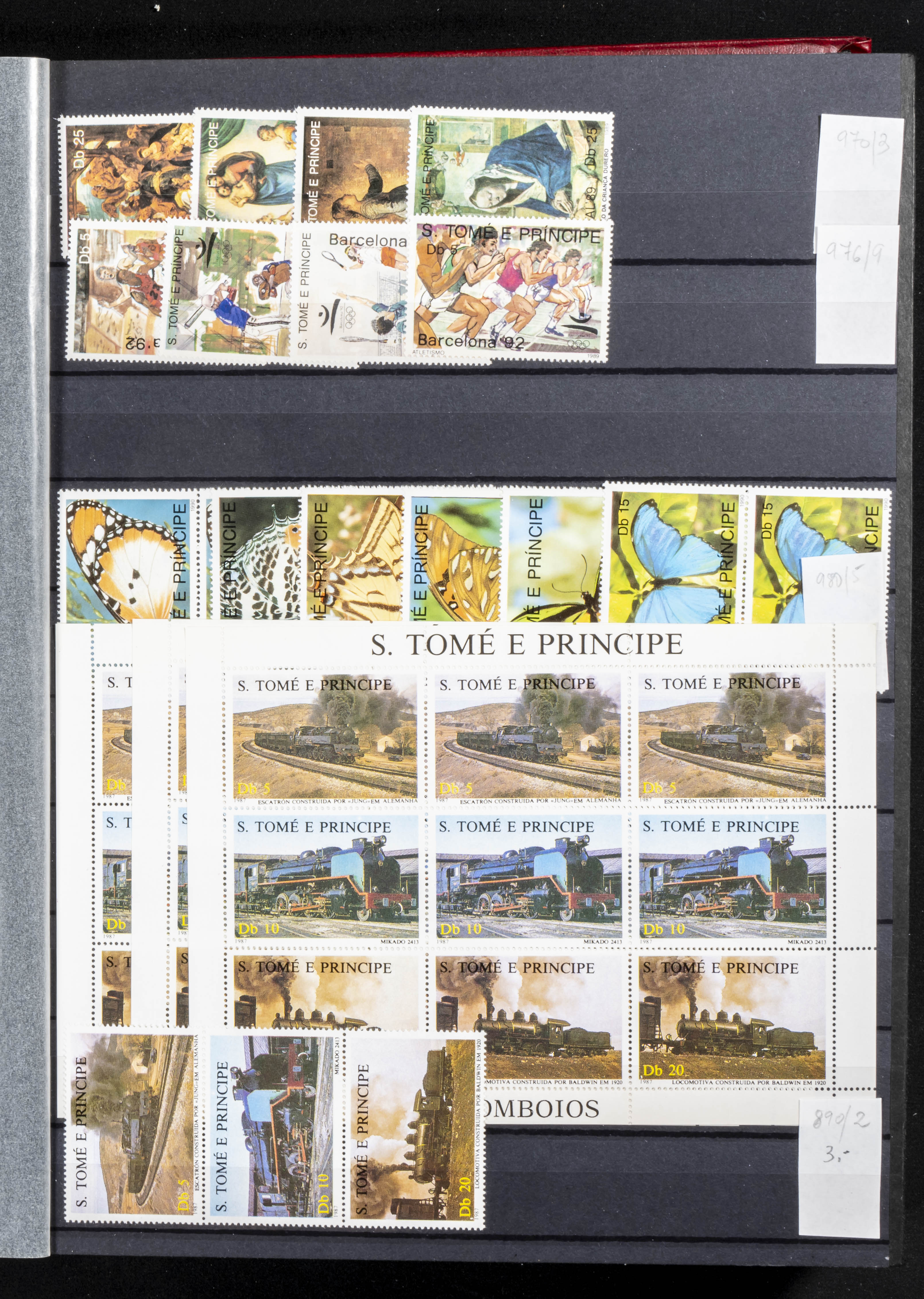 ★★(1990ca). Conjunto de más de mil series completas nuevas (alguna usada), hojas bloque o minihojas (mayoría) de diversos países como Santo Tomás y Príncipe, Guyana y otros países africanos de habla francesa, la mayor parte repetidas hasta treinta o cuarenta unidades de cada. ALTISIMO VALOR DE CATALOGO. A EXAMINAR.