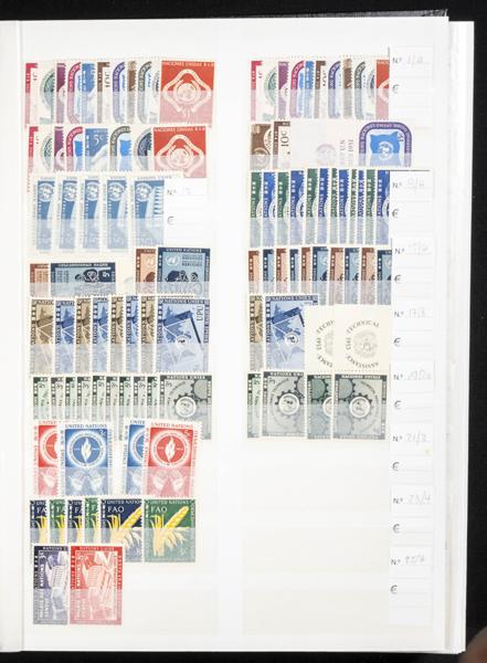 ★★(1951ca). Conjunto-stock de cientos de series completas y hojas bloque de Naciones Unidas (Nueva York, Ginebra y Viena) entre 1951 y 1998, en nuevo y la mayorÃa con repeticiones entre cuatro y quince series de cada e incluyendo numerosas minihojas. ALTO VALOR DE CATALOGO. A EXAMINAR.