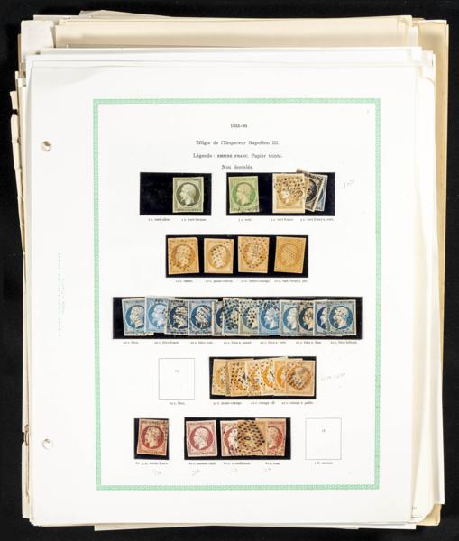 ★/(1850ca). Interesante conjunto de sellos clásicos, series completas y sellos sueltos de diversos paÃses nuevos y usados, todos clasificados con indicación del número Yvert (algún sello falso) y numerosas piezas de valor medio y alto, incluye alguna variedad o matasello especial. ALTISIMO VALOR DE CATALOGO. A EXAMINAR.