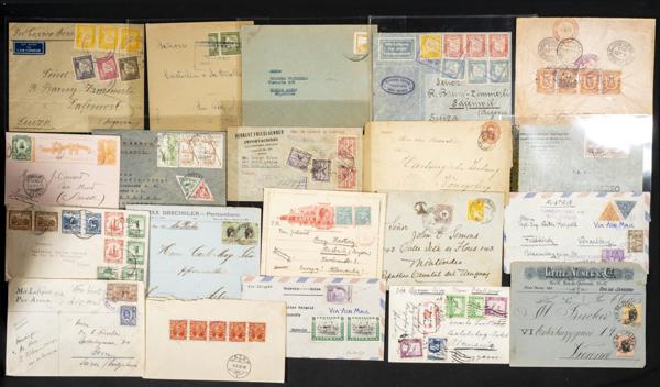 (1885ca). Interesante conunto de más de cuarenta y cinco cartas, tarjetas postales y Entero Postales de diversos paÃses de América Central y América del Sur, circuladas entre 1885 y 1950, muchas por correo certificado y algunas con destinos poco usuales. A EXAMINAR.
