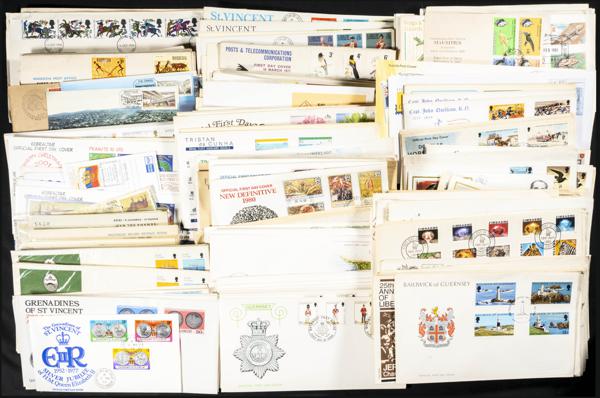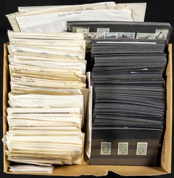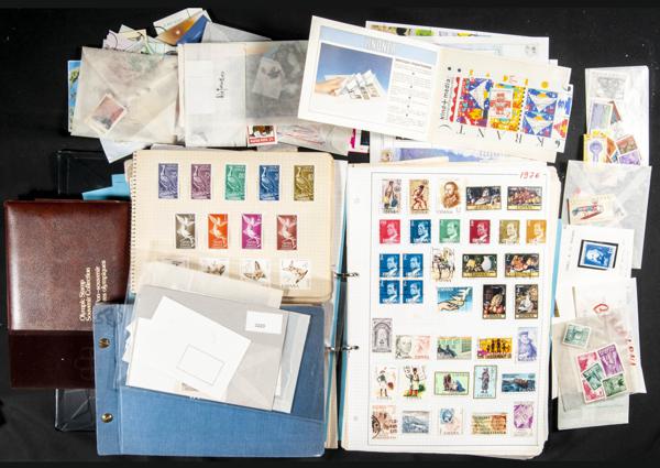 (1920ca). Interesante conjunto de miles de sellos de diversos paÃses usados entre 1920 y 1990, incluye cartas circuladas, Sobres de Primer DÃa, numerosos sellos nuevos y alguna carpeta de presentación especial. A EXAMINAR.