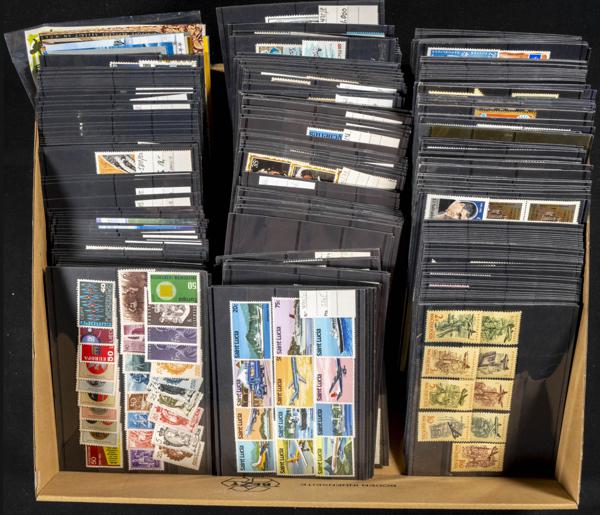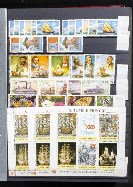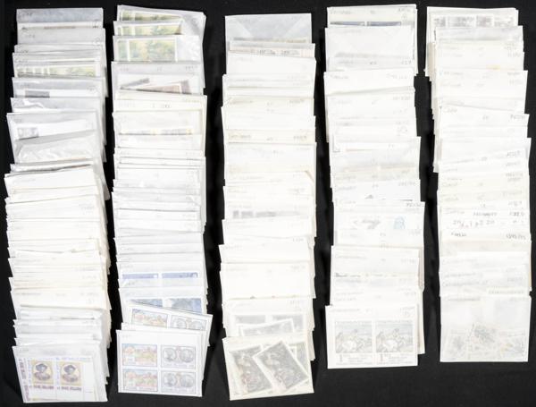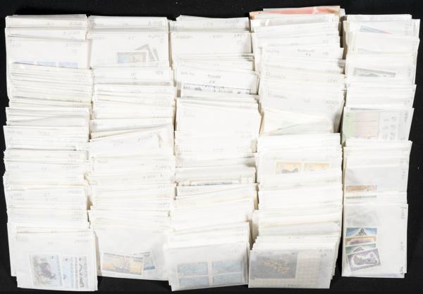 ★★(1990ca). Conjunto de más de mil series completas nuevas (alguna usada), hojas bloque o minihojas (mayorÃa) de diversos paÃses como Santo Tomás y PrÃncipe, Guyana y otros paÃses africanos de habla francesa, la mayor parte repetidas hasta treinta o cuarenta unidades de cada. ALTISIMO VALOR DE CATALOGO. A EXAMINAR.