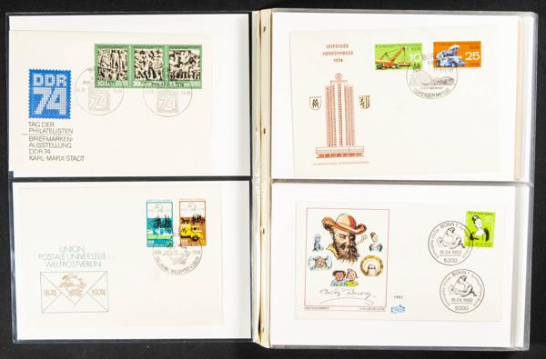 (1942ca). Interesante conjunto de más de quinientos Sobres de Primer DÃa, Tarjetas Postales, Tarjetas Máximas y cartas circuladas de diversos paÃses, la mayorÃa europeos comprendidas entre 1942 y 1995. A EXAMINAR.