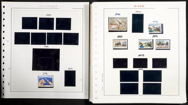 ★★/(1964ca). Resto de colección de la temática Astrofilatelia entre 1964 y 1969, en nuevo y usado (montado en álbum Philos). A EXAMINAR.