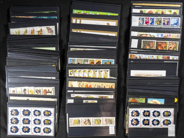 ★★(1950ca). Espectacular conjunto-stock de miles de series completas de todo el mundo de la temática Setas entre 1950 y 2000, incluye hojas bloque, minipliegos, hojitas individuales, Pruebas de Lujo, sin dentar, etc, además de alguna prueba especial, la mayorÃa del material se encuentra organizado en fichas y a su vez en álbumes con indicación del número Yvert y en muchos casos precio de catálogo en euros, con repeticiones hasta ocho-diez unidades de cada. ALTISIMO VALOR DE CATALOGO. IMPRESCINDIBLE EXAMINAR.