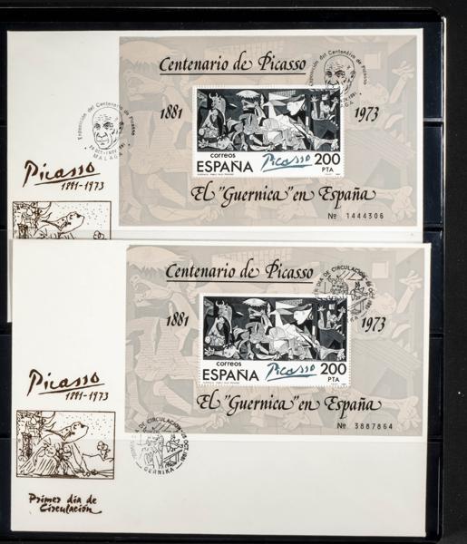 ★★/(1973ca). Interesante colección temática Centenario de Picasso en nuevo con series completas, hojas bloque y algún Sobre de Primer DÃa, montados en álbumes especÃficos con sellos de diversos paÃses entre 1973 y 1982, incluye un clasificador con series repetidas y alguna variedad de la misma temática. A EXAMINAR.