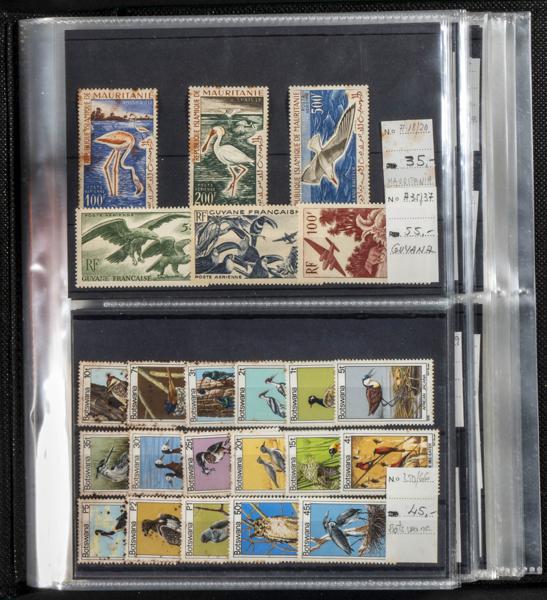★★/★(1945ca). Interesante conjunto de cientos de series completas y hojas bloque nuevas de diversos paÃses entre 1945 y 1995 y organizado por temáticas como Fauna (Perros, Gatos, Aves y Mariposas), Ferrocarriles, Ajedrez y Descubrimiento de América, incluye alguna variedad en esta última temática. ALTO VALOR DE CATALOGO. A EXAMINAR.