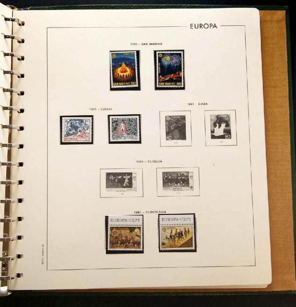 ★★(1956ca). Colección completa del Tema Europa entre 1956 y 1976, en nuevo y sin fijasellos (montada en álbum Lindner), incluye otro álbum con el año 1980 y parte de 1981. A EXAMINAR. Yvert 2016: +3.300 Euros