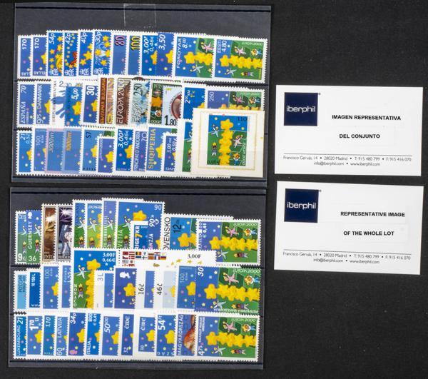 ★★2000. Conjunto de doce años completos 2000 de Tema Europa, en nuevo y sin las hojas bloque (montados en fichas). A EXAMINAR. Yvert 2016: 1.962 Euros