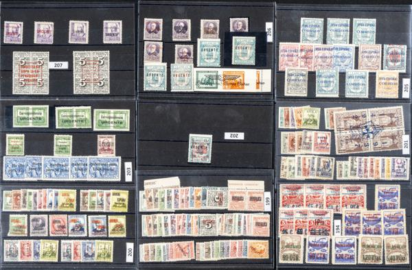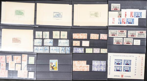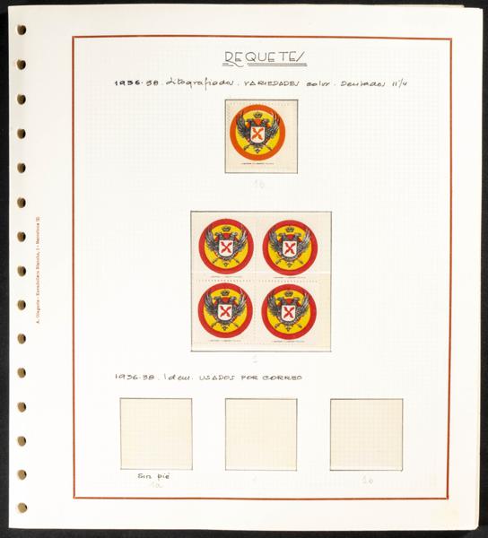 Interesante conjunto de viñetas y Benéficos de Requetés, en nuevo (mayorÃa) y usado, algunos en bloques o parejas e incluyendo variedades sin dentar, parejas capicúas o sin dentar parcialmente. A EXAMINAR.