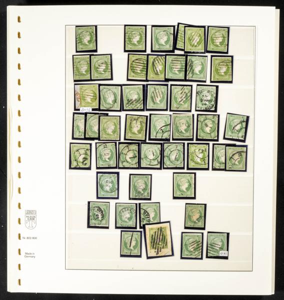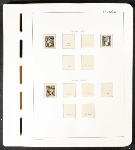 Espectacular conjunto-colección especializado de la emisión de 1855 sin filigrana con sellos nuevos (excepto 2 cuartos), grandes bloques nuevos y usados, variedades de cliché o de color, matasellos diversos (R. Carreta, pluma, parrillas en tinta, fechadores, ambulantes, etc), asà como matasellos diversos, alguno especial. IMPRESCINDIBLE EXAMINAR.