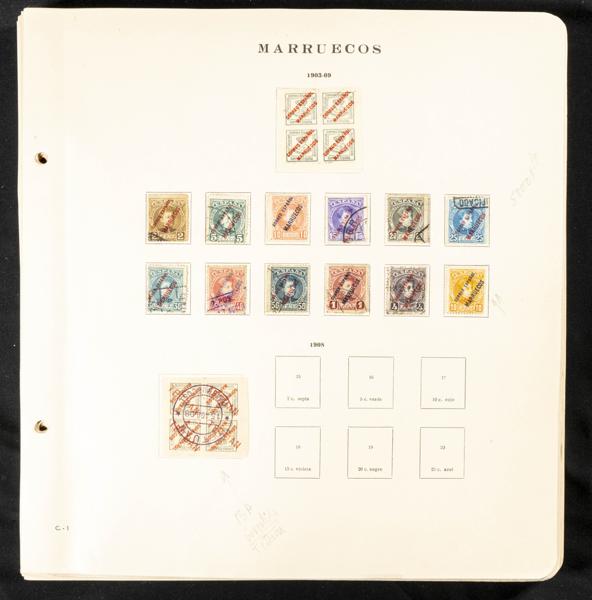 Interesante colección de Marruecos entre 1903 y 1957, en nuevo y usado, destacando la primera serie de 1903 (10 pts nuevo), Paisajes de 1928 nueva, Paisajes de 1933 y 1936 usadas, Alzamiento nueva, etc, asà como sellos y series completas de Tánger, Marruecos Francés y Marruecos Independiente hasta 1970, la mayorÃa nuevos. ALTO VALOR DE CATALOGO. A EXAMINAR.