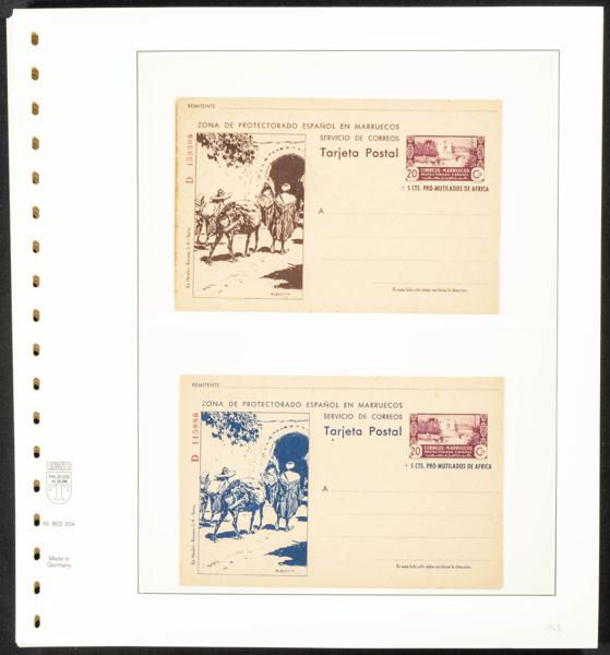 InteresantÃsimo y rarÃsimo conjunto de cuarenta y cinco Tarjetas Entero Postales nuevas de Marruecos de 1944, dos de la serie D, nueve de la serie E, tres de la serie F y treinta y una de la serie G, por lo general de buena calidad (alguna con manchitas). A EXAMINAR.