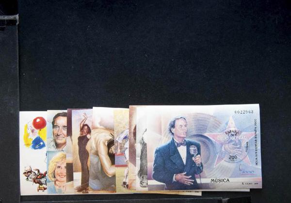 ★★ 3756/66s(13). 2000. Trece series completas de hojas bloque de ESPAÑA 2000 (sin dentar), en sus carpetillas. MAGNIFICAS. Edifil 2024: 858 Euros