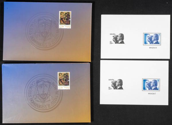 ★★ 3817/19(2), 4087A(2). (2001ca). Conjunto de dos carpetas completas de Santo Domingo de Silos y dos hojitas especiales de ESPAÑA 2004 VALENCIA. A EXAMINAR. Edifil 2010: 300 Euros