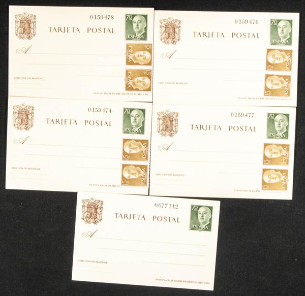 (★) EP90(5). 1962. Conjunto de cinco Tarjetas Entero Postales de Franco de 70 cts (cuatro con sellos de 15 cts adheridos sin valor). A EXAMINAR. Edifil 2024: 255 Euros