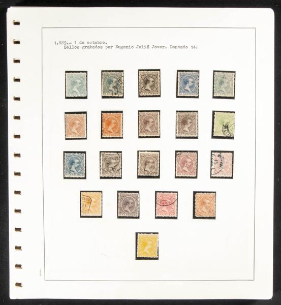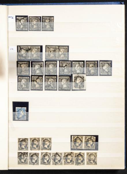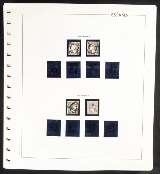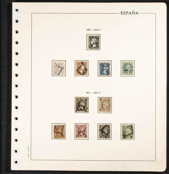 ★/(1850ca). Espectacular colección completa del sello clásico español 1850-1900, incluyendo todos los sellos originales (excepto el 2 reales de 1852, que se trata de un falso Sperati), hay presentes algunos sellos nuevos en una colección mayoritariamente en usado y con calidades diversas, no se puede descartar algún sello reparado o alguna tinta lavada (muchos de los sellos importantes con certificado). IMPRESCINDIBLE EXAMINAR.
