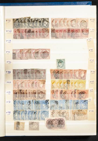 ★★/(1852ca). Interesante conjunto de sellos sueltos clásicos y del 2º Centenario (montados en clasificador tipo mamut), la parte clásica en usado con varios cientos de sellos, incluyendo algunos ensayos de Amadeo y variedades, la parte del 2º Centenario comprendida entre 1950 y 1965, en nuevo y la mayorÃa sin fijasellos. A EXAMINAR.