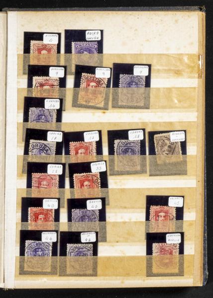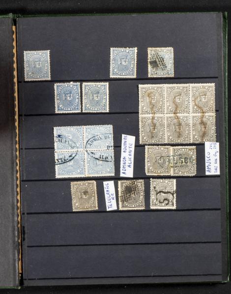 (1860ca). Interesante conjunto de más de doscientos cuarenta sellos entre 1860 y 1945 con matasellos especiales como carterÃas, ambulantes, fechador tipo "trébol", extranjeros, etc, incluye algún fiscal. A EXAMINAR.