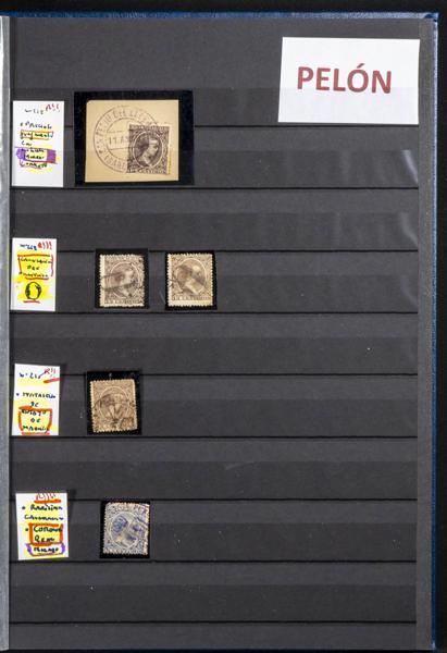 (1889ca). Interesante conjunto de más de doscientos veinte sellos de diferentes emisiones entre 1889 y 1924 (Alfonso XIII) con matasellos especiales, algunos sobre fragmentos y otros en bloques, como carterÃas, ambulantes, lineales, mudos, de Certiifcado, ceros, etc. A EXAMINAR.