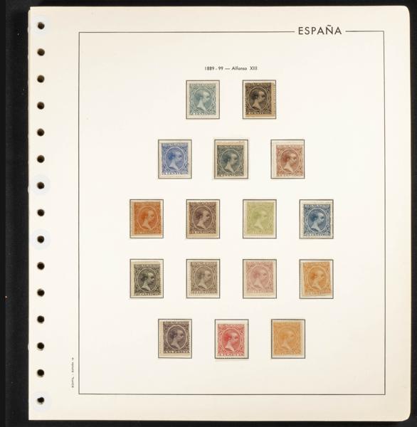 ★(1900ca). Espectacular colección desde 1900 a 1949, en nuevo y en su mayorÃa con fijasellos, estando representados todos los sellos sin excepción, en calidades diversas, en algún sello podemos encontrarnos algún puntito de óxido o alguna goma no original, las hojas bloque de Constitución y Defensa de Madrid (fotografiada en libro de Schier) sobrecargadas son originales (se incluye algún certificado). IMPRESCINDIBLE EXAMINAR.