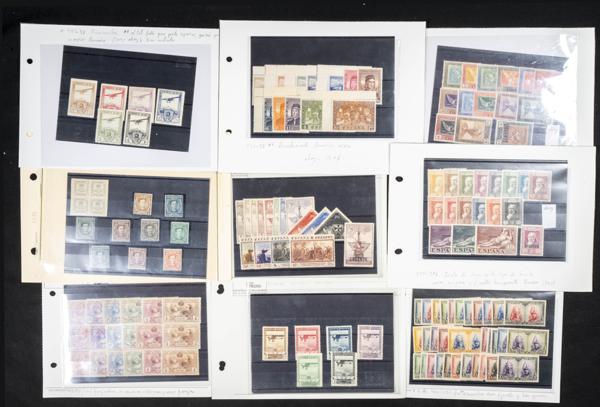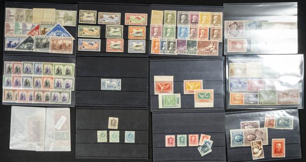 ★/(★)(1930ca). Interesante conjunto entre 1930 y 1965 de series completas y sellos sueltos en nuevo, destacando varias series del Descubrimiento, Prensa, Goya, etc, asà como alguna hoja bloque. ALTO VALOR DE CATALOGO. A EXAMINAR.