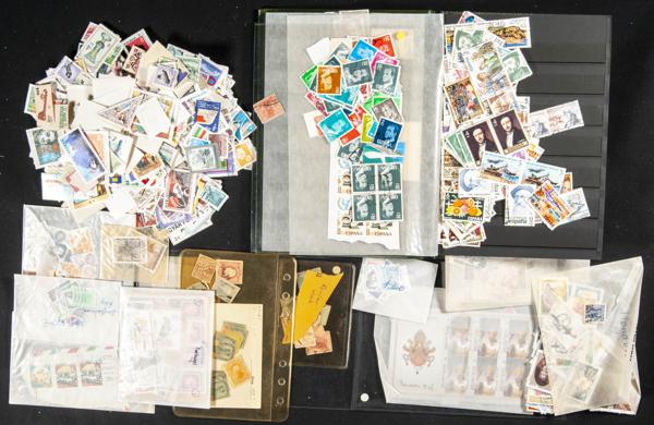 (1950ca). Conjunto de miles de sellos usados de España y Extranjero, la mayorÃa comprendidos entre 1950 y 1990, incluye alguna hoja recuerdo, carpetillas con matasello especial y algunos sellos de 4 cuartos de 1855, 1862 y 1864. A EXAMINAR.