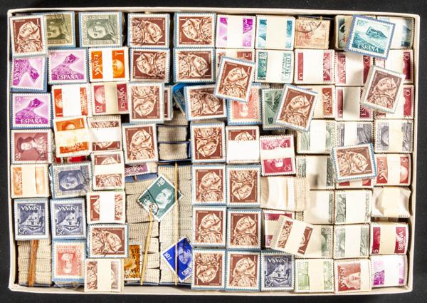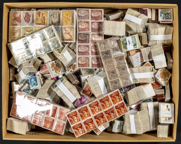(1930ca). Conjunto de miles de sellos usados de España y Extranjero, la mayorÃa comprendidos entre 1930 y 1980, en cajitas y en álbumes. A EXAMINAR.