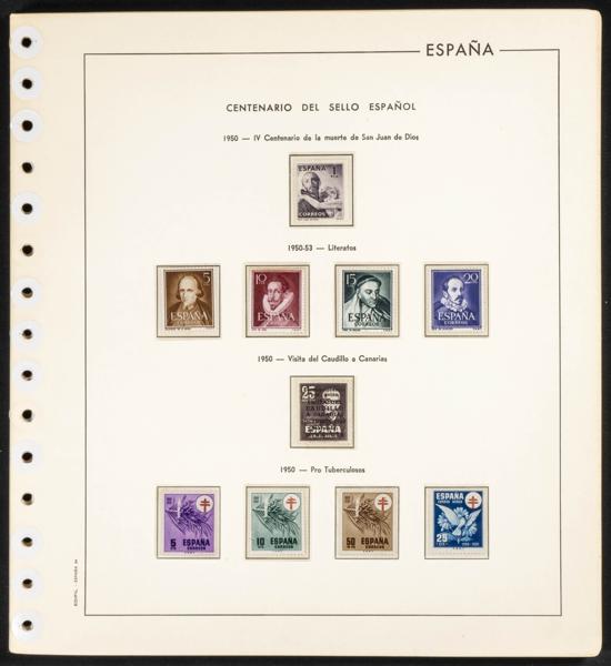 ★★/★(1950ca). Colección del 2º Centenario de 1950 al 2005, en nuevo (en la primera parte presenta fijasellos en muchos de los sellos e incluso algún puntito de óxido) (Centenario 15 pts y 20 pts adelgazados, Caudillo sin número y "Legazpi y Sorolla" con fijasellos, Caudillo con número sin fijasellos y excepcional centraje). A EXAMINAR.