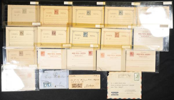 ★/(1940ca). Conjunto de series completas y sellos sueltos de Colonias Españolas de Africa, en nuevo y usado e incluyendo un conjunto de Tarjetas Entero Postales de Filipinas y Cuba de Alfonso XII y Alfonso XIII, en nuevo (+450 Euros de catálogo), dos cartas de Cuba entre 1853 y 1890 y algunas cartas modernas de Guinea y Marruecos. A EXAMINAR.